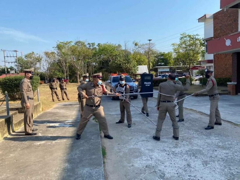 พ.ต.อ.ปรีชา สารถี ผกก.สภ.วังหิน อ.วังหิน จ.ศรีสะเกษ มอบหมายให้ พ.ต.ท.พงศ์กรณ์ ศรีสุวรรณ รอง ผกก.ป.สภ.วังหิน พร้อมด้วย พ.ต.ท.ณัฐพล น้อมพิทักษ์ประชา สวป.สภ.วังหิน และ ร.ต.อ.สุพลชัย ทองทวี รอง สวป.สภ.วังหิน ทำหน้าที่ครูฝึก นำข้าราชการตำรวจ สภ.วังหิน ทำการฝึกยุทธวิธีตามแบบฝึกยุทธวิธีของตำรวจ การใช้ไม้ง่ามระงับเหตุคนเมาและคนวิกลจริต สามารถตอบโจทย์เรื่องความปลอดภัยในการเข้าระงับเหตุคนเมาและคนวิกลจริต ซึ่งจะสามารถช่วยลดอัตราการบาดเจ็บของเจ้าหน้าที่และผู้ก่อเหตุได้