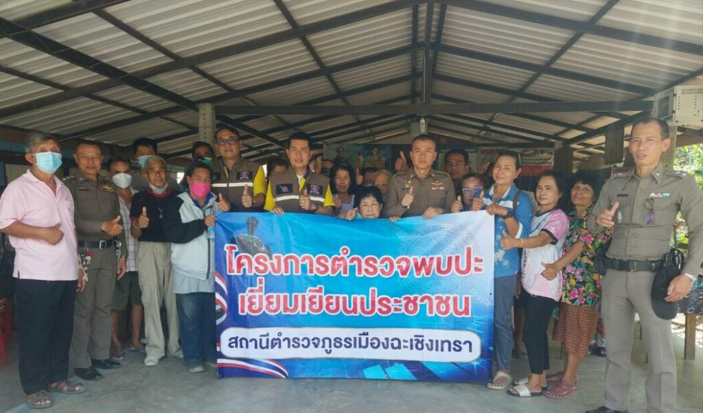 “เดอะแทค” จับมือภาค ปชช. ลงพื้นที่ตามโครงการ “ตำรวจพบปะเยี่ยมเยียนประชาชน” และ “RTP Cyber Village” วันที่ 28 ก.พ. 66 พ.ต.อ.ณัฐจักร จันลา ผกก.สภ.เมืองฉะเชิงเทรา พร้อมด้วย พ.ต.ท.อัณณพ จันทนภักดี สวป. เจ้าหน้าที่ตำรวจชุดมวลชนสัมพันธ์ และตัวแทนภาคประชาชน นายประชา คล้ายสิงห์ กต.ตร.ภ.จว.ฉช นายมานัส โท้เป๋า ประธาน กต.ตร.สภ.เมืองฯ ร่วมลงพื้นที่พบปะเยี่ยมเยียนประชาชน สอบถามว่ามีปัญหาร้องเรียนในเรื่องใดบ้าง เพื่อหาแนวทางแก้ปัญหา ตามโครงการ “ตำรวจพบปะเยี่ยมเยียนประชาชน” และโครงการ “RTP Cyber Village” โดยมี นายสัมพันธ์ จันทมาศ กำนันตำบลบ้านใหม่ ผู้นำท้องถิ่น ให้การต้อนรับ ณ ที่ทำการกำนัน หมู่ 1 ต.บ้านใหม่