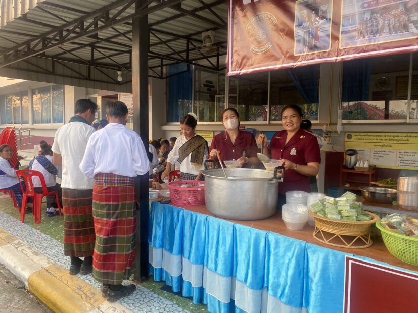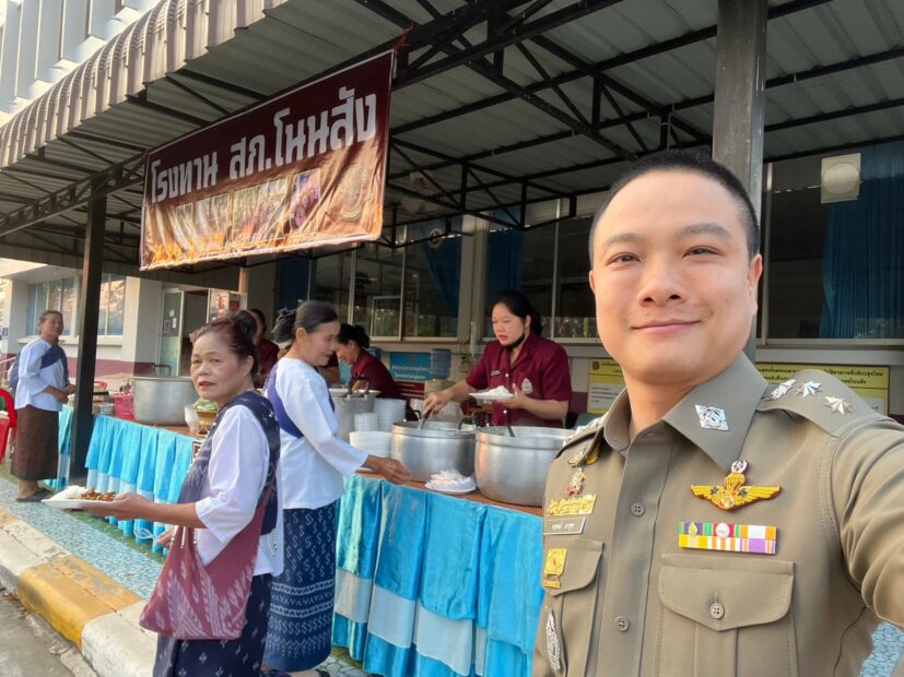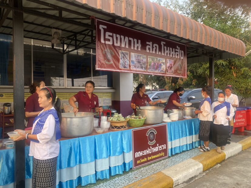 พ.ต.อ.กฤษณ์ มาสุข ผกก.สภ.โนนสัง หลังขยับมานั่งในตำแหน่งที่ สภ.โนนสัง ภ.จว.หนองบัวลำภู ไม่ได้นิ่งดูดาย กำลังปรับเปลี่ยนทัศนคติข้าราชการตำรวจให้มีจิตใจเป็นผู้ให้และเสียสละ ไม่เว้นแม่บ้านข้าราชการตำรวจในสังกัด เมื่อวันก่อนยกครัวมาตั้งบริการหน้า สภ.โนนสัง พร้อมด้วยข้าราชการตำรวจและแม่บ้านตำรวจ สภ.โนนสัง สละทุนทรัพย์ส่วนตัว ร่วมจัดทำโรงทานให้บริการประชาชนที่มาร่วมงาน “กราบหลวงพ่อใหญ่ ไหว้ศาลหลักเมือง เที่ยวเมือง 2 ภู ดูของดีวิถีโนนสัง” ณ วัดศิริชัยเจริญ อ.โนนสัง จ.หนองบัวลำภู งานนี้ทำเอาผู้กำกับหนุ่มออกมาให้กำลังใจแม่บ้านตำรวจโนนสัง ที่ร่วมกันจัดทำโรงทานให้ชาวบ้าน ที่มาร่วมรำบวงสรวงศาลหลักเมือง พร้อมประชาชนทั่วไปที่ผ่านไปมาได้รับประทาน พร้อมรับเครื่องดื่มเย็นๆ สบายใจกัน แถมได้บุญกันถ้วนหน้า มิน่าละ พล.ต.ต.พงพิพัฒน์ ศิริพรวิวัฒน์ ผบก.ภ.จว.หนองบัวลำภู ยกนิ้วชื่นชมผู้ใต้บังคับบัญชาในสังกัด ที่มีจิตอาสาบริการประชาชนดุจญาติ