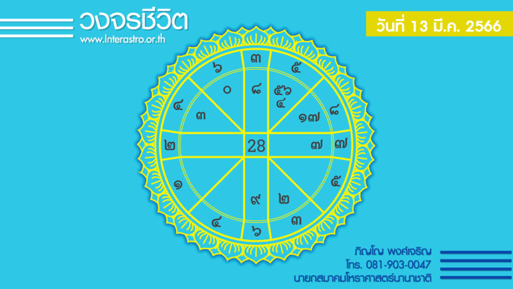 สุริยคติกาล วันที่ 13 มีนาคม พ.ศ. 2566 ค.ศ. 2023 จันทรคติกาล ตรงกับวันจันทร์ แรม 7 ค่ำ เดือน 4 ปีขาล จัตวาศก จุลศักราช 1384 อาทิตย์อุทัย เวลา 06.28 น. เที่ยงจริง เวลา 12.28 น. อาทิตย์ตก เวลา 18.28 น. จันทร์ขึ้น เวลา 23.08 น.