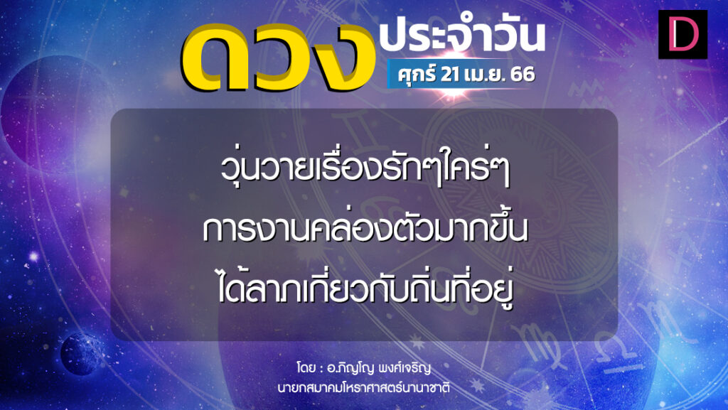 วันนี้ เวลา 00.00-23.06 น. ดาวจันทร์เสวยภรณีนักษัตรฤกษ์ที่ 2 ประกอบด้วยมหัทธโนแห่งฤกษ์ มหัทธโน แปลว่า คหบดี เศรษฐี ผู้มั่งคั่งด้วยทรัพย์สินเงินทอง เวลา 23.07-24.00 น. ดาวจันทร์เสวยกฤตติกานักษัตรฤกษ์ที่ 3 ประกอบด้วยโจโรแห่งฤกษ์ โจโร แปลว่า โจร ผู้ปล้น ผู้ลักขโมย วันศุกร์-อุบาทว์และโลกาวินาศตามกาลโยค เวลา 00.00-06.02 น. -ห้ามทำการมงคล เวลา 06.03-23.06 น. -ทำการมงคลได้สารพัดตามฤกษ์บนหมวดมหัทธโนฤกษ์ เวลา 23.07-24.00 น. -ทำการมงคลได้ตามฤกษ์บนหมวดโจโรฤกษ์ ทิศที่เป็นมงคล-ตะวันออกเฉียงใต้ ทิศอัปมงคล-ตะวันตกเฉียงเหนือ สีประจำวัน-ฟ้า น้ำเงิน สีสิริมงคล-ชมพู สีอัปมงคล-ม่วงดอกตะแบก ดำ ราศีที่ดาวศรีสถิต-มิถุน ราศีที่ดาวกาลีสถิต-เมษ