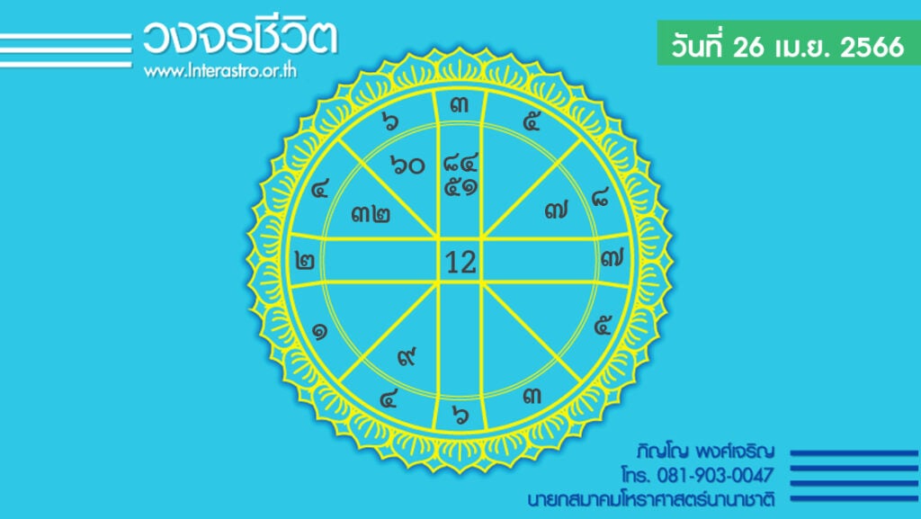 วันนี้ เวลา 00.00-04.18 น. ดาวจันทร์เสวยอารทรานักษัตรฤกษ์ที่ 6 ประกอบด้วยเทวีแห่งฤกษ์ เทวี แปลว่า นางพญา หมายถึง สตรีผู้มีฐานะและตำแหน่งสูง เวลา 04.19-24.00 น. ดาวจันทร์เสวยปุนนัพสุนักษัตรฤกษ์ที่ 7 ประกอบด้วย เพชฌฆาตแห่งฤกษ์ เพชฌฆาต แปลว่า ผู้ฆ่า ทำการเพื่อให้สิ่งที่เข้ามาพ่ายแพ้ ข่มขวัญ น่ายำเกรง มีความขลังและมีความศักดิ์สิทธิ์ วันพุธ-อธิบดีตามกาลโยค เวลา 00.00-24.00 น. -ห้ามทำการมงคล ทิศที่เป็นมงคล-ตะวันตกเฉียงเหนือ ทิศอัปมงคล-ตะวันออกเฉียงใต้ สีประจำวัน-เขียว สีสิริมงคล-ม่วงดอกตะแบก สีอัปมงคล-ชมพู ราศีที่ดาวศรีสถิต-เมษ ราศีที่ดาวกาลีสถิต-มิถุน