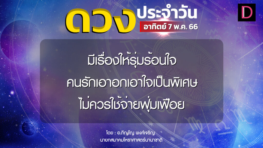 สุริยคติกาล วันที่ 7 พฤษภาคม พ.ศ. 2566 ค.ศ. 2023 จันทรคติกาล ตรงกับวันอาทิตย์ แรม 3 ค่ำเดือน 6 ปีเถาะ เบญจศกจุลศักราช 1385 อาทิตย์อุทัย เวลา 05.54 น. เที่ยงจริง เวลา 12.15 น. อาทิตย์ตก เวลา 18.35 น. จันทร์ขึ้น เวลา 19.51 น.