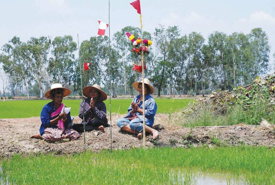 “ข้าวมีความเกี่ยวเนื่องสัมพันธ์กับวิถีชีวิตไทย เกี่ยวข้องกับวัฒนธรรมประเพณี ซึ่งผสมกลมกลืนกัน แต่ละท้องถิ่น ภูมิภาคมีการประกอบพิธีกรรมที่เกี่ยวเนื่องกับข้าวสืบเนื่องมา มีประเพณีหลวง ประเพณีราษฎร์ ดังเช่นพระราชพิธีพืชมงคลจรดพระนังคัลแรกนาขวัญ พระราชพิธีที่จัดขึ้นเพื่อบำรุงขวัญและกำลังใจของเกษตรกร ขณะที่พิธีของราษฎร์ จะปฏิบัติกันในระดับบุคคลหรือชุมชน”