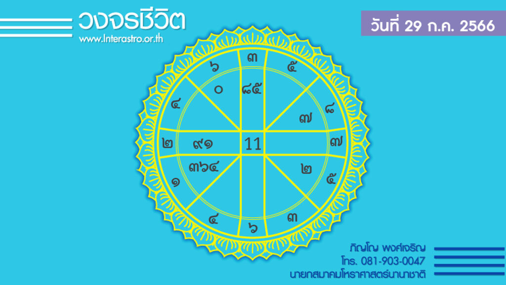 วันนี้ เวลา 00.00-19.30 น. ดาวจันทร์เสวยเชษฐนักษัตรฤกษ์ที่ 18 ประกอบด้วยสมโณแห่งฤกษ์ สมโณ แปลว่า ผู้สงบ เวลา 19.31-24.00 น. ดาวจันทร์เสวยมูละนักษัตรฤกษ์ที่ 19 ประกอบด้วยทลิทโทแห่งฤกษ์ ทลิทโท แปลว่า ผู้ขอ ผู้มักน้อย วันเสาร์-ธงไชยตามกาลโยค เวลา 00.00-06.01 น.-ทำการมงคลได้ตามฤกษ์บนหมวดสมโณฤกษ์ เวลา 06.02-24.00 น.-ห้ามทำการมงคล ทิศที่เป็นมงคล-เหนือ ทิศอัปมงคล-ใต้ สีประจำวัน-ดำ สีสิริมงคล-ฟ้า น้ำเงิน สีอัปมงคล-เขียวสด ราศีที่ดาวศรีสถิต-สิงห์ ราศีที่ดาวกาลีสถิต-สิงห์