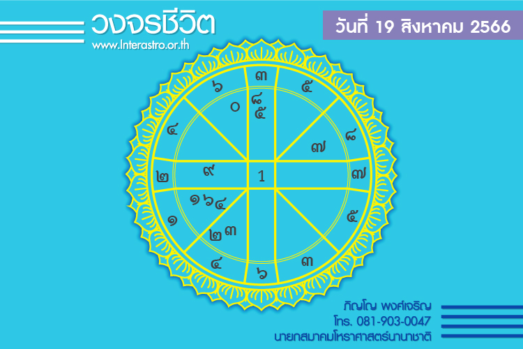 สุริยคติกาล วันที่ 19 สิงหาคม พ.ศ. 2566 ค.ศ. 2023 จันทร คติกาล ตรงกับวันเสาร์ ขึ้น 3 ค่ำ เดือน 9 ปีเถาะ เบญจศก จุลศักราช 1385 อาทิตย์อุทัย เวลา 06.05 น. เที่ยงจริง เวลา 12.22 น. อาทิตย์ตก เวลา 18.38 น. จันทร์ตก เวลา 20.44 น.