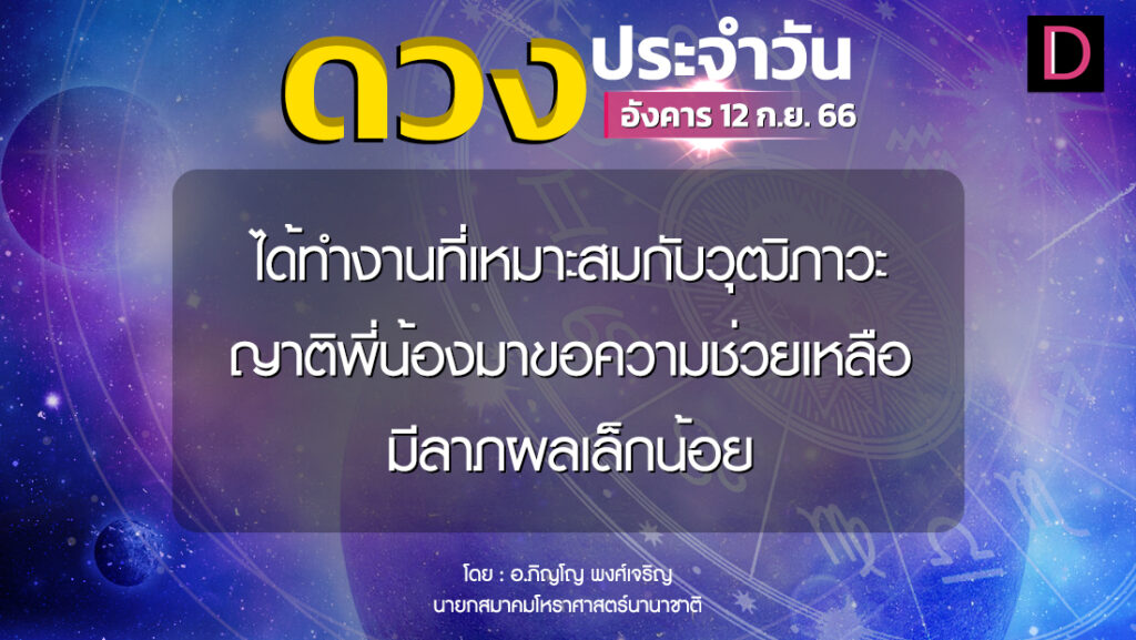 วันนี้ เวลา 00.00-21.54 น. ดาวจันทร์เสวยอาศเลษานักษัตรฤกษ์ที่ 9 ประกอบด้วยสมโณแห่งฤกษ์ สมโณ แปลว่า ผู้สงบ หมายถึง นักบวช พระสงฆ์ สมณชีพราหมณ์ นักสอนศาสนา ครูบาอาจารย์ ผู้ถือสันโดษ เวลา 21.55-24.00 น. ดาวจันทร์เสวยมาฆะนักษัตรฤกษ์ที่ 10 ประกอบด้วยทลิทโทแห่งฤกษ์ ทลิทโท แปลว่า ผู้ขอ ผู้มักน้อย ยากจนเข็ญใจ เวลา 00.00-21.54 น.-ทำการมงคลได้ตามฤกษ์บนหมวดสมโณฤกษ์ เวลา 21.55-22.57 น.-ทำการมงคลได้ตามฤกษ์บนหมวดทลิทโทฤกษ์ เวลา 22.58-24.00 น.-ห้ามทำการมงคล ทิศที่เป็นมงคล-ตะวันตก ทิศอัปมงคล-ตะวันออก สีประจำวัน-ชมพู สีสิริมงคล-เหลือง น้ำตาล สีอัปมงคล-ขาวงาช้าง ราศีที่ดาวศรีสถิต-เมษ ราศีที่ดาวกาลีสถิต-สิงห์