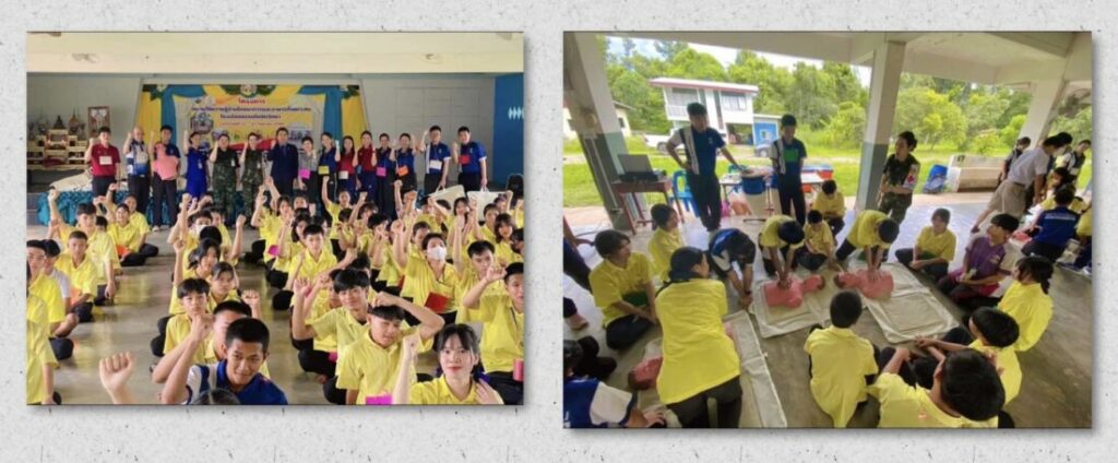 ช่วยชีวิตขั้นพื้นฐาน….ผลกระทบจากสุขภาพการเสียชีวิตฉับพลัน กลายเป็นหลักสูตรหนึ่งที่หลายองค์กรให้ความสนใจ เร่งทำการฝึกฝนให้บุคลากรได้เรียนรู้ ล่าสุด พ.ต.ธนภณ ชัยวรกุล ผอ.ค่ายพระยอดเมืองขวาง อ.เมือง จ.นครพนม จัดเจ้าหน้าที่ แผนกส่งเสริมสุขภาพ รพ.ค่ายพระยอดเมืองขวาง อบรมให้ความรู้เรื่อง การช่วยชีวิตขั้นพื้นฐาน CPR และการใช้เครื่อง AED แก่นักเรียนโรงเรียนธรรมโฆษิตวิทยา อ.ปลาปาก จ.นครพนม ให้มีทักษะในการช่วยเหลือตนเอง หรือครอบครัว หรือเหตุการณ์เฉพาะหน้ากรณีฉุกเฉิน โดยมีผู้เข้าร่วมอบรม 100 คน
