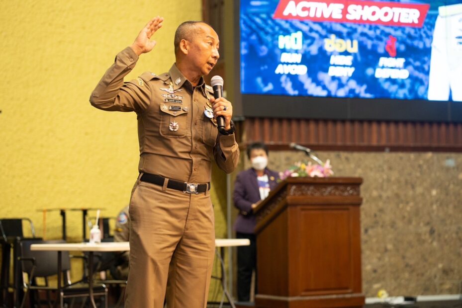 ขณะเดียวกันได้เร่งถอดบทเรียนให้ความรู้ หนี-ซ่อน-สู้ “แอคทีฟ ชู้ตเตอร์” ให้ความรู้ตำรวจทั้งสายงานปราบปราม–หน่วยปฏิบัติการพิเศษ เกี่ยวกับการเข้าระงับเหตุ เพื่อเพิ่มขีดความสามารถรับมือเหตุเฉพาะหน้า โดยเฉพาะเหตุกราดยิง ควบคู่กับการต่อยอดความรู้ไปยังสถานศึกษา และหน่วยงานอื่น กลายเป็นหลักสูตรที่รู้จักแพร่หลาย