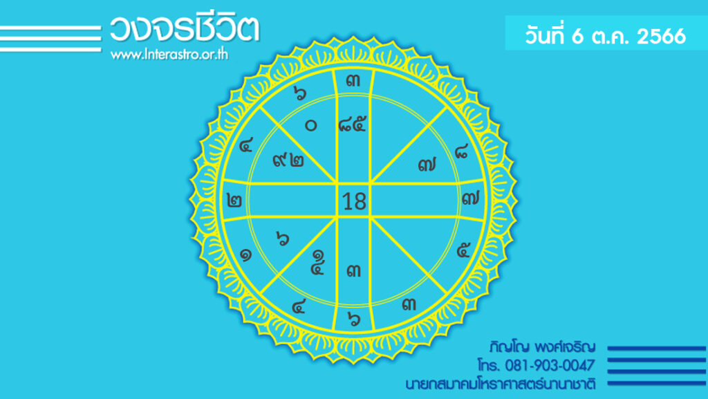 สุริยคติกาล วันที่ 6 ตุลาคม พ.ศ. 2566 ค.ศ. 2023จันทรคติกาล ตรงกับวันศุกร์ แรม 7 ค่ำ เดือน 10 ปีเถาะ เบญจศก จุลศักราช 1385 อาทิตย์อุทัย เวลา 06.08 น. เที่ยงจริง เวลา 12.07 น. อาทิตย์ตก เวลา 18.05 น. จันทร์ขึ้น เวลา 00.15 น.