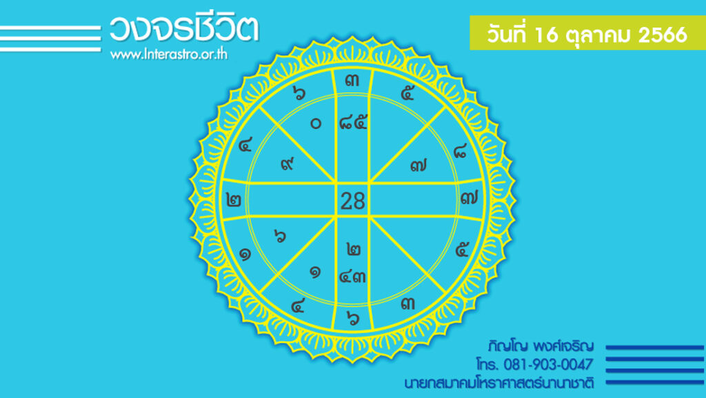 วันนี้ เวลา 00.00-18.18 น. ดาวจันทร์เสวยสวาตินักษัตรฤกษ์ที่ 15 ประกอบด้วยเทวีแห่งฤกษ์ เทวี แปลว่า นางพญา หมายถึง สตรีผู้มีฐานะและตำแหน่งสูง เวลา 18.19-24.00 น. ดาวจันทรเสวยวิสาขานักษัตรฤกษ์ที่ 16 ประกอบด้วยเพชฌฆาตแห่งฤกษ์ เพชฌฆาต แปลว่า ผู้ฆ่า ทำการเพื่อให้สิ่งที่เข้ามาพ่ายแพ้ ข่มขวัญ น่ายำเกรง มีความขลังและศักดิ์สิทธิ์ เวลา 00.00-06.09 น.-ทำการมงคลได้สารพัดตามฤกษ์บนหมวดเทวีฤกษ์ เวลา 06.10-24.00 น.-ห้ามทำการมงคล ทิศที่เป็นมงคล-ตะวันตกเฉียงใต้ ทิศอัปมงคล-ตะวันออกเฉียงเหนือ สีประจำวัน-ขาว สีสิริมงคล-ดำ ม่วงแก่ เทา สีอัปมงคล-แดง แดงส้ม ราศีที่ดาวศรีสถิต-กุมภ์ ราศีที่ดาวกาลีสถิต-กันย์
