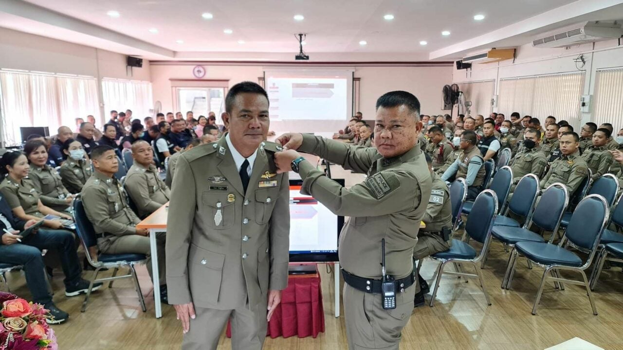 พ.ต.อ.รักชาติ เรืองเจริญ ผกก.สภ.ชุมแพ จ.ขอนแก่น ประดับยศให้กับ พ.ต.ต.อัมพร จักษุทิพย์ สวป.(ชส.) สภ.ชุมแพ หลังได้รับตำแหน่งใหม่ ที่สูงขึ้น ก่อนประชุมข้าราชการตำรวจทุกแผนกงาน เพื่อชี้แจงข้อราชการ มอบนโยบายการปฏิบัติหน้าที่ประจำเดือน และแนวทางการทำงาน “งานดี สุขภาพดี มีเกียรติ” หลังเข้ารับตำแหน่ง ผกก.ใหม่ เช่นกัน ณ ห้องประชุม สภ.ชุมแพ