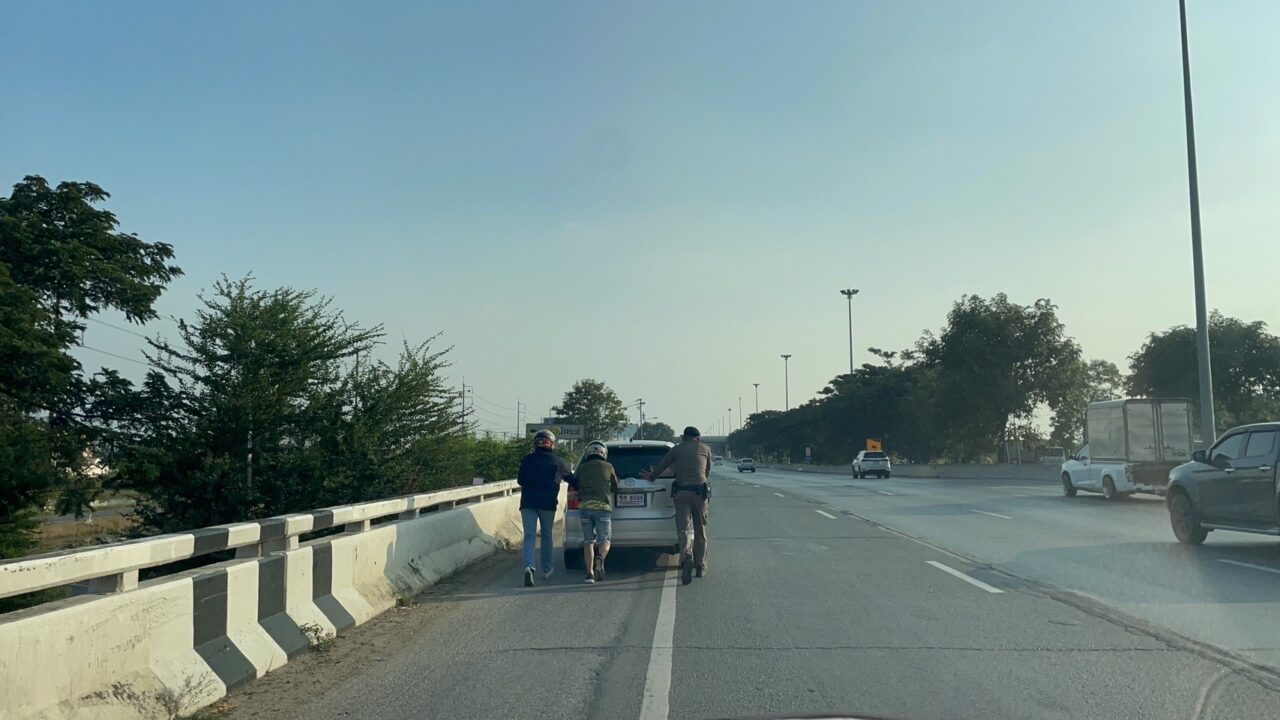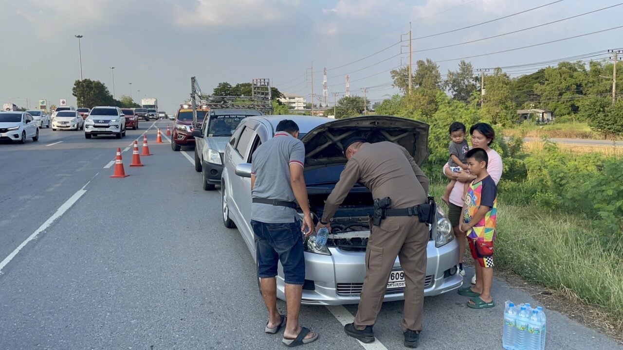 โดย ร.ต.อ.ประธาน จตุพันธ์ รอง สว(ป) ส.ทล.1กก.1บก.ทล. ด.ต.สมศักดิ์ จันทาทอง ผบ.หมู่ ส.ทล.1กก.1บก.ทล. ได้ช่วยกันเข็นรถยนต์เก๋งเข้าชิดขอบทางด้านซ้ายอย่างเร่งด่วนเพื่อความปลอดภัย จากนั้นดำเนินการประสานหาช่างที่มีความชำนาญด้านระบบหม้อน้ำมาทำการซ่อมแซม จนสามารถเดินทางไปต่อได้อย่างปลอดภัย