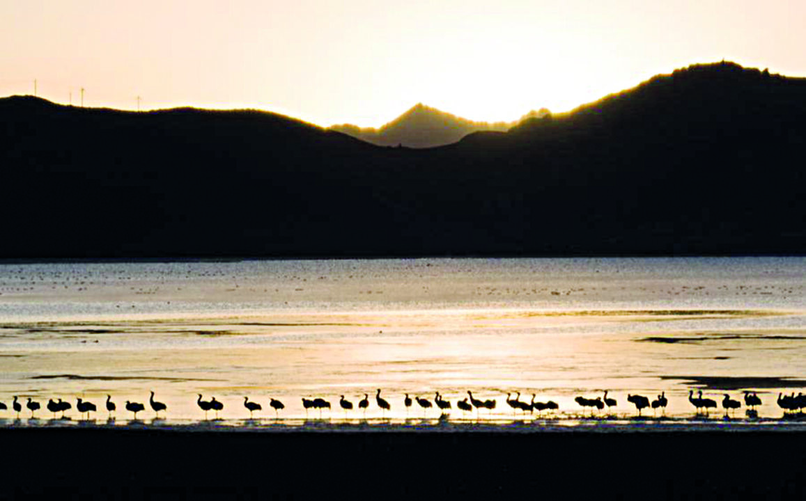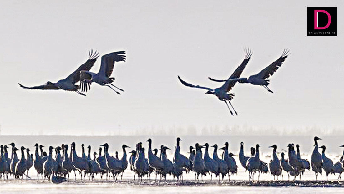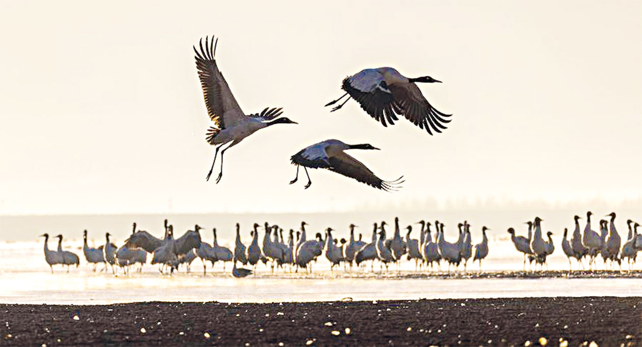 สำหรับอำเภอหลินโจวจัดเป็นหนึ่งในแหล่งที่อยู่อาศัยหลักยามอพยพหลบอากาศหนาวเย็นของนกกระเรียนคอดำ ซึ่งตั้งอยู่สูงเหนือระดับน้ำทะเลเฉลี่ยราว 4,200 เมตร (บันทึกภาพวันที่ 30 ธ.ค. 2023).