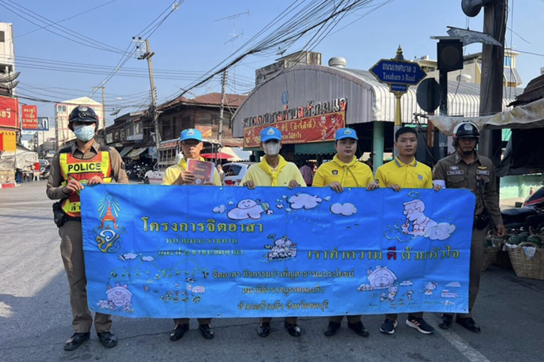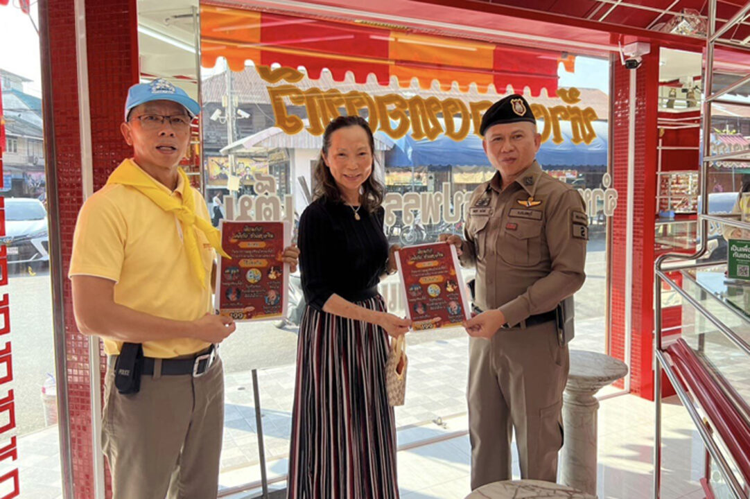 พ.ต.อ.กฤศ ธิติทัศนะ ผกก.สภ.คลองกิ่ว อ.บ้านบึง จ.ชลบุรี พร้อมด้วย พ.ต.ท.นพรุจ ณ รังษี รอง ผกก.ป. พ.ต.ท.อุทิศ นิมิตพงศ์พร สว.อก. พร้อมข้าราชการตำรวจจิตอาสา ร่วมรณรงค์ประชาสัมพันธ์ให้ชาวบ้านระมัดระวังในการจุดธูป จุดเทียน เผากระดาษในพิธีไหว้ต่างๆ ช่วงเทศกาลตรุษจีนประจำปี พ.ศ. 2567 เพื่อป้องกันอัคคีภัยในพื้นที่เสี่ยง ในตลาดชุมชนตลาดสดตำบลหัวกุญแจ ต.คลองกิ่ว