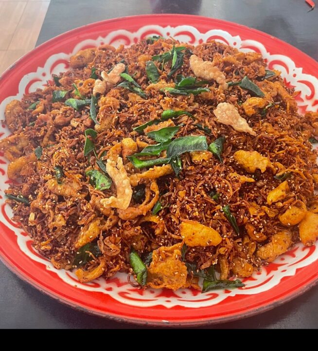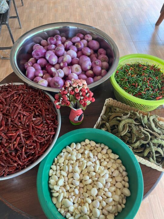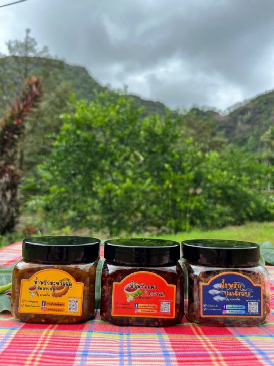 น้ำพริกที่เป็นจุดเด่นของทางร้านอีกหนึ่งอย่าง ที่ “น้องเผือก” ได้ลิ้มลองแล้วติดใจแถมหรอยจี๊ดมากเลยก็คือ “น้ำพริกปลาฉิ้งฉ้าง” ที่คุณหนิงได้เล่าให้ฟังว่า ปลาฉิ้งฉ้างเป็นปลาที่เป็นวัตถุดิบหลักจากจังหวัดชุมพร มีแคลเซียมสูงและมีประโยชน์ต่อร่างกาย ทางร้านจึงนำมาแปรรูปเป็นน้ำพริก และอยากผลักดันให้เป็นผลิตภัณฑ์สินค้าโอทอป ให้เป็นที่รู้จักของจังหวัดชุมพร ซึ่งทางร้านก็ได้สนับสนุนชาวประมง โดยรับซื้อจากชาวบ้านเรือเล็ก จะสดใหม่ทุกวัน และวัตถุดิบต่างๆ เช่น พริก ข่า ตะไคร้ ทางร้านก็ปลูกเอง และรับซื้อจากชาวบ้านใกล้เคียง เพื่อสนับสนุนทางการเกษตร และได้สินค้าที่มีคุณภาพปลอดสารพิษ เพื่อนำมาผลิตเป็นสินค้าออกท้องตลาด ให้ลูกค้าได้รับประทานสินค้าดีและมีคุณภาพ ทางร้านใส่ใจและคัดสรรวัตถุดิบทุกชนิด เพื่อเป็นเอกลักษณ์ของรสชาติ และใส่ใจทุกขั้นตอนการผลิต