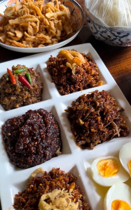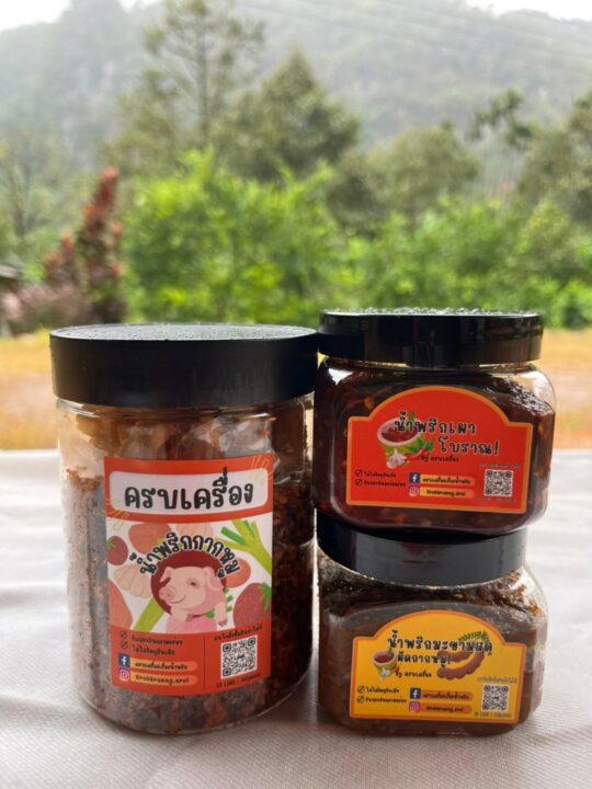 นอกจากนี้ ทางร้านยังมีน้ำพริกกากหมูและน้ำพริกหนังไก่กรอบ น้ำพริกที่เป็นจุดเด่นของทางร้าน เช่น น้ำพริกเผาโบราณ เราสามารถนำมาปรุงอาหารได้หลากหลายเมนู ไม่ว่าจะเป็นต้มยำกุ้ง/ปลา ผัดหอยลาย หรือนำมาทำยำชนิดต่างๆ รับรองความอร่อยจัดจ้านถึงใจ