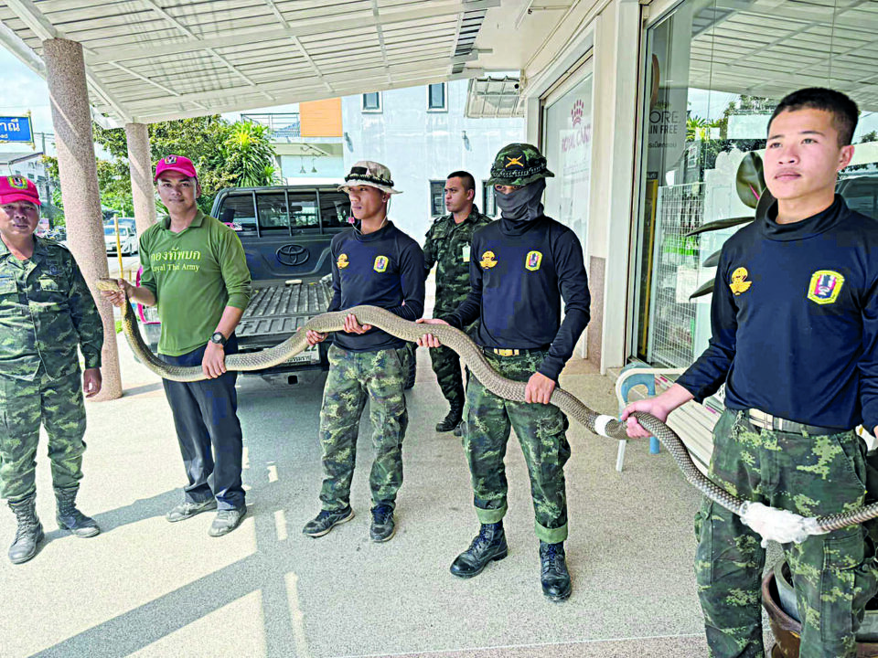 ผู้สื่อข่าวรายงานความคืบหน้าจากการเดินทางไปสัมภาษณ์สัตวแพทย์หญิง ปิยาภรณ์ วัฒนาพันธุ์ สัตวแพทย์ประจำโรงพยาบาลสัตว์สิชล ผู้ทำการผ่าตัดและเย็บแผลรักษางูจงอางหรือ “บองหลา” ยักษ์ ตัวดังกล่าว โดยแพทย์หญิงปิยาภรณ์ กล่าวถึงเหตุการณ์ว่าในวันดังกล่าวได้รับโทรศัพท์จากน้องผู้หญิงคนหนึ่งว่าทางโรงพยาบาลรับรักษางูจงอางไหม เพราะงูจงอางโดนสุนัขกัดมาจนมีแผลฉกรรจ์ ตอนแรกหมอก็งงว่างูจงอางมันมาได้อย่างไร จึงสอบถามว่ามีคนมาช่วยจับงูให้หมอไหม หากมีคนมาช่วยจับงูตอนที่หมอทำการรักษาหมอก็พร้อมที่จะช่วยเย็บแผลให้ น้องผู้หญิงแจ้งว่ามีทีมของทหารจะมาช่วยจับงูจงอางให้ หมอจึงบอกให้เขาพางูจงอางตัวดังกล่าวมาที่โรงพยาบาล หลังจากนั้นทหารก็เดินทางมาด้วยรถกระบะและช่วยกันอุ้มงูจงอางยักษ์เข้ามาและหมอพาเข้าไปในห้องผ่าตัด ตรวจสอบเบื้องต้นพบว่าแผลของน้องงูจงอางจะอยู่บริเวณหลังรูทวาร แผลกว้างและมีอวัยวะเหมือนลำไส้ทะลักออกมา แต่ค่อนข้างจะเน่าและเหม็นแล้ว สอบถามทหารบอกว่าเป็นแผลมาประมาณ 3-4 วันแล้ว จึงทราบว่าเมื่อ 3-4 วันก่อนกู้ภัยฯ ไต้เต็กตึ๊งแจ้งให้ทหารไปช่วยจับงูจงอางตัวดังกล่าวมาที่ค่ายทหาร และพบว่ามีแผลฉกรรจ์ ตอนแรกทหารคิดว่าจะช่วยกันเย็บแผลให้งูจงอางกันเอง แต่ทำไม่ได้และแผลเริ่มเน่าติดเชื้อ จึงติดต่อมาปรึกษาหมอว่าหมอทำได้ไหม