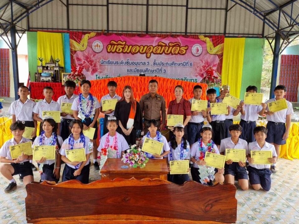 พ.ต.อ.รักชาติ เรืองเจริญ ผกก.สภ.ชุมแพ จ.ขอนแก่น มอบหมายให้ ร.ต.อ.ภานุพันธุ์ สุพันทวี รองสวป.สภ.ชุมแพ ร่วมพิธีมอบเกียรติบัตร ให้แก่เด็กนักเรียน โรงเรียนเอี่ยมอินทร ที่ผ่านการอบรม ตามโครงการ การศึกษาเพื่อต่อต้านการใช้ยาเสพติดในเด็กนักเรียน (D.A.R.E. ประเทศไทย)