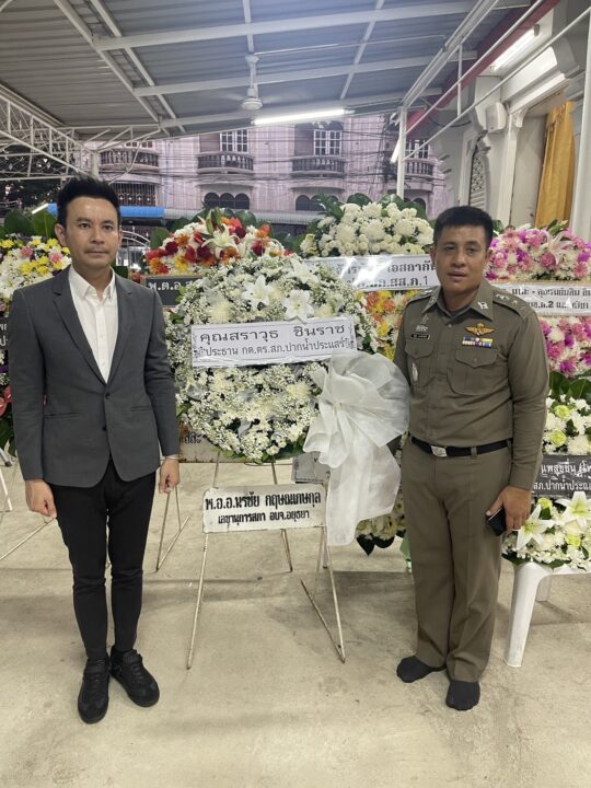 นายสราวุธ ชินราช ประธาน กก.ตร.สภ.ปากน้ำประแสร์ จ.ระยอง ร่วมเป็นเจ้าภาพฟังสวดพระอภิธรรมศพ ร.ต.อ.เสริมศักดิ์ นาคขำพันธ์ บิดา พ.ต.อ.พิมุข นาคขำพันธ์ ผกก.สภ.ปากน้ำประแสร์ โดยมีข้าราชการตำรวจ สภ.ปากน้ำประแสร์ เข้าร่วมงานด้วยบรรยากาศโศกเศร้า ณ วัดเสนาสนารามราชวรวิหาร ศาลา 9 อ.พระนครศรีอยุธยา จ.พระนครศรีอยุธยา