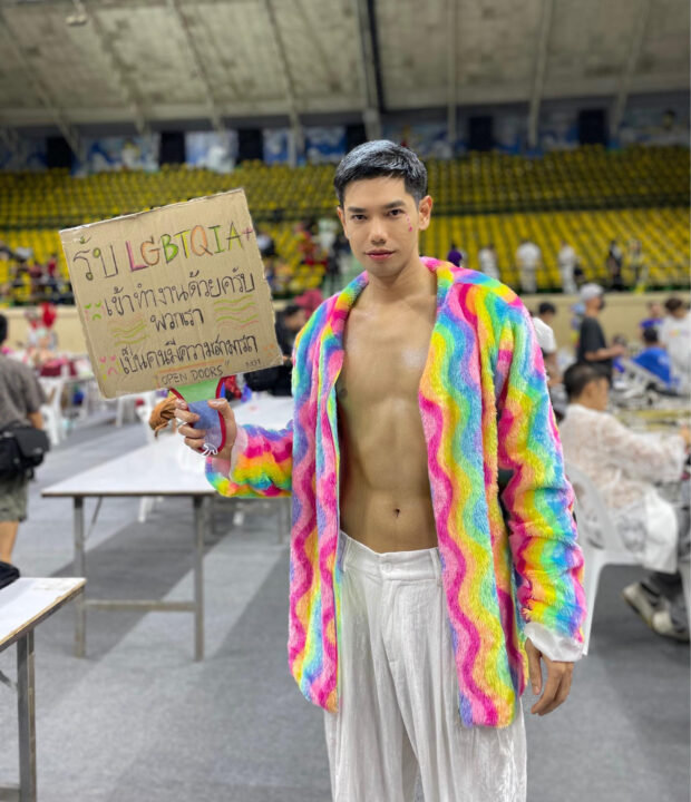 ผู้เข้าประกวด Mr Gay World Thailand อีกคนหนึ่งที่คิดว่า “ควรมีพื้นที่เป็นมิตรสำหรับกลุ่มหลากหลายทางเพศมากขึ้น” คือ “ต่อ ณัฐพงษ์ บุญพ่วง” ซึ่งเขาเป็นศิลปินอิสระ ทำงานด้านนี้ทั้งการร้องเพลงและการวาดภาพ ถ่ายภาพ นักแสดงละครเวทีโรงเล็ก ต่อว่า ศิลปะก็คือ soft power ที่สำคัญ “ผมทำแคมเปญชื่อ art your voice เปิดพื้นที่ให้ศิลปินที่เป็น LGBT+ หรือศิลปะที่เกี่ยวข้องกับความเป็น LGBT+ ซึ่งศิลปะสำหรับผม เป็นเรื่องการถ่ายทอดความคิดอย่างไม่จำกัด แต่บางครั้งมันก็อ่อนไหวในบางเรื่อง เช่นที่เกี่ยวกับความเชื่อ ศาสนา ซึ่งผมว่า นอกจากมีพื้นที่ในการเผยแพร่มันก็ต้องมีพื้นที่ให้ศิลปินได้อธิบายงานของเขาด้วย ปัจจุบันมีความเปิดกว้างมากเรื่องพื้นที่มากขึ้น แต่ผมยังอยากให้มันเปิดกว้างกว่าเดิมเช่น การที่ศิลปิน LGBT+ ได้นำผลงานของตัวเองไปแสดงในแกลลอรี่ขนาดใหญ่อย่างหอศิลปวัฒนธรรมกรุงเทพ (BACC) ซึ่งเป็นพื้นที่ค่อนข้างเปิดกว้าง แต่บางเนื้อหาก็ค่อนข้างละเอียดอ่อน ศิลปินหลายๆ คนต้องไปแสดงงานในพื้นที่ที่ต้องใช้การลงทุนเช่าที่ราคาแพง หรือช่วยเหลือกันในกลุ่มศิลปินในการให้ยืมพื้นที่ ก็อาจต้องยอมขาดทุน