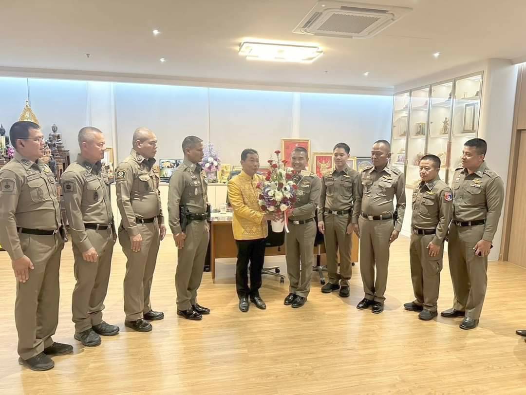 นายไตรภพ วงศ์ไตรรัตน์ ผู้ว่าราชการจังหวัดระยอง ให้เกียรติรับมอบช่อดอกไม้จากพล.ต.ต.พงศ์พันธ์ วงษ์มณีเทศ ผบก.ภ.จว.ระยอง พร้อมด้วย หัวหน้าสภ.ในสังกัด ตบเท้าเข้าร่วมอวยพรในครั้งนี้ด้วย ณ ศูนย์ราชการจังหวัดดระยอง