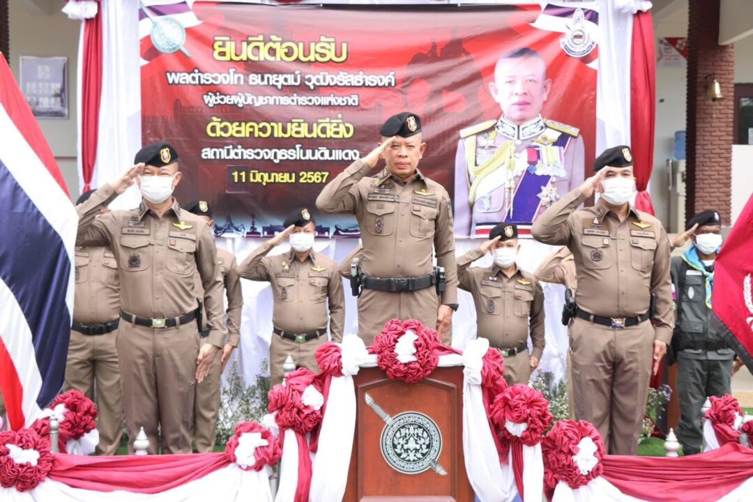 พล.ต.ท.ธนายุตม์ วุฒิจรัสธำรงค์ ผู้ช่วย ผบ.ตร. เดินทางมาตรวจเยี่ยมบำรุงขวัญข้าราชการตำรวจ ประจำปี พ.ศ.2567 พร้อมมอบสิ่งของบำรุงขวัญ ให้แก่ข้าราชการตำรวจ สภ.โนนดินแดง อ.โนนดินแดง จ.บุรีรัมย์ โดยมี พล.ต.ต.พรชัย นลวชัย รอง ผบช.ภ.3, พล.ต.ต.รุทธพล เนาวรัตน์ ผบก.ภ.จว.บุรีรัมย์, พ.ต.อ.ชูสิทธิ์ หล่อแสง รอง ผบก.ภ.จว.บุรีรัมย์, นายเอกวัฒน์ พวงประโคน นายอำเภอโนนดินแดง, พ.ต.อ.อนุการ ธรรมวิจารณ์ ผกก.สภ.โนนดินแดง, พ.ต.อ.สยาม เกียรติบรรจง ผกก.สภ.ทะเมนชัย, พ.ต.อ.คณัสนันท์ สุวรรณทรัพย์ ผกก.สภ.โนนสุวรรณ, พ.ต.อ.ศักดิ์ศรี ไกรราช ผกก.สภ.หนองกี่, พ.ต.อ.ชิษณุพงศ์ เถียรกิตติพงศ์ ผกก.สภ.ปะคำ, พ.ต.อ.อดิศักดิ์ จันทร์สอน ผกก.สภ.หนองหงส์, กต.ตร. และข้าราชการตำรวจ สภ.โนนดินแดง ร่วมให้การต้อนรับ