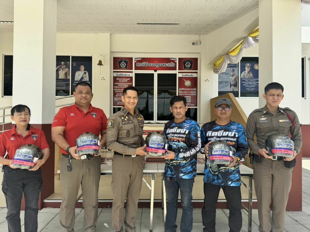 พ.ต.อ.ธนกร รอดเรือง ผกก.สภ.สระแก้ว จ.สุพรรณบุรี รับมอบหมวกนิรภัยจาก ชมรมคิดถึงป่าออฟโรดสุพรรณบุรี จำนวน 21 ใบ เพื่อนำไปร่วม “โครงการผ้าป่า หมวกนิรภัย ตำรวจภูธรจังหวัดสุพรรณบุรี”