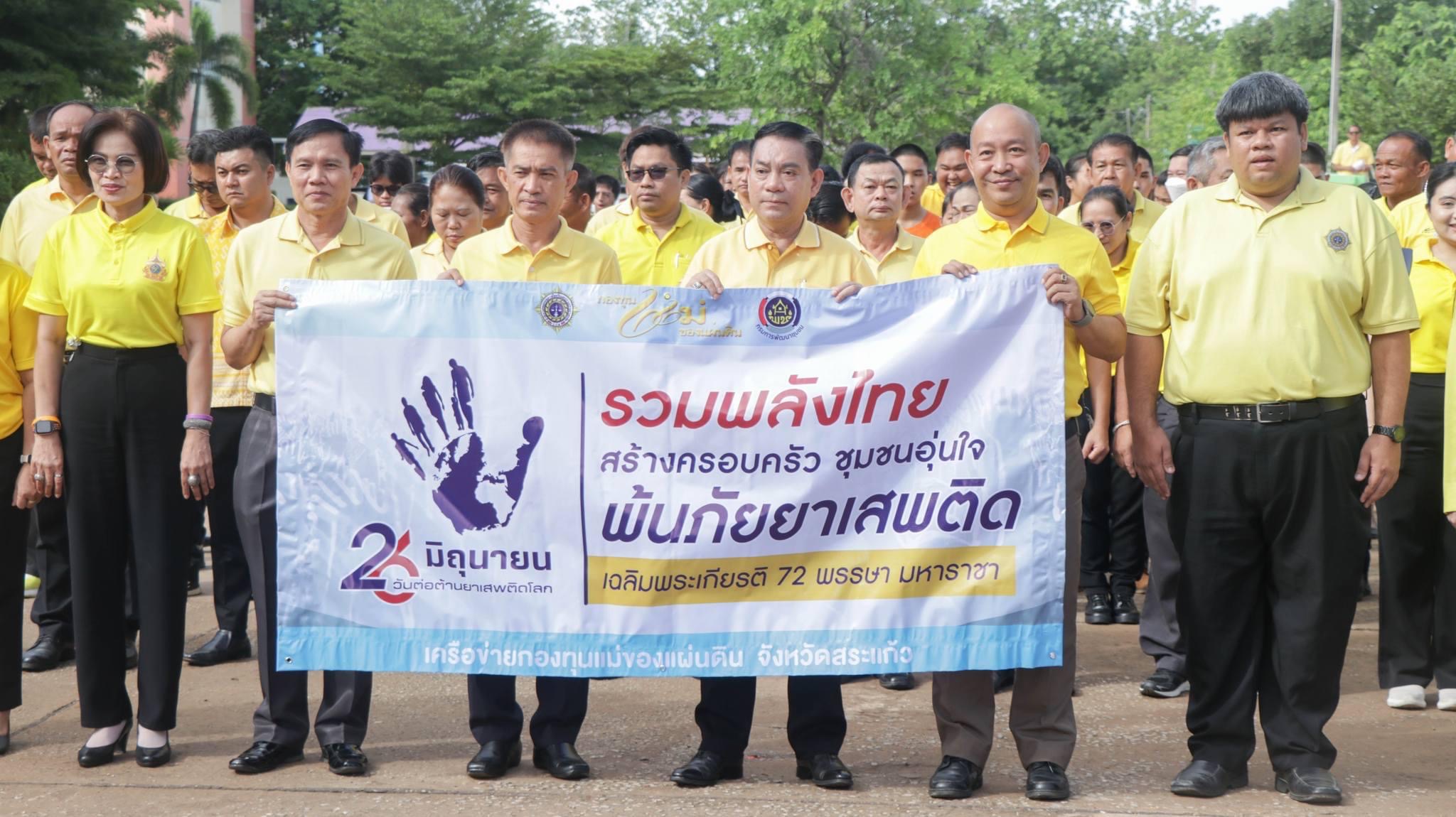 พ.ต.อ.จตุรภัทร สิงหัษฐิต รอง ผบก.ภ.จว.สระแก้ว ร่วมกิจกรรมเดินรณรงค์ พร้อมทั้งร่วมกันกล่าวปฏิญาณตนประกาศเจตนารมณ์ต่อต้านยาเสพติดเนื่องในวันต่อต้านยาเสพติดโลก 26 มิถุนายน 2567 ภายใต้กรอบแนวคิดและคำขวัญรวมพลังไทย สร้างครอบครัว ชุมชนอุ่นใจ พ้นภัยยาเสพติด เฉลิมพระเกียรติ 72 พรรษามหาราชา ณ วิทยาลัยเทคนิคสระแก้ว อ.วัฒนานคร จ.สระแก้ว