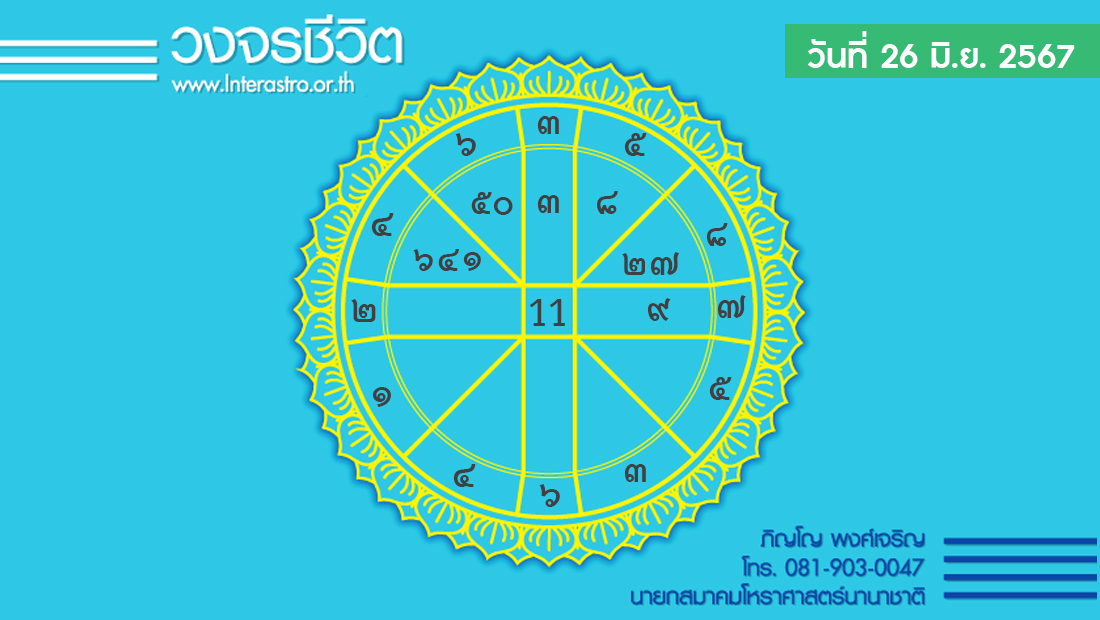 วันนี้ เวลา 00.00-14.42 น. ดาวจันทร์เสวยธนิษฐนักษัตรฤกษ์ที่ 23 ประกอบด้วยเทศาตรีแห่งฤกษ์หรือเวสิโยแห่งฤกษ์ เทศาตรี แปลว่า ข้ามถิ่น หมายถึงฤกษ์พ่อค้าข้ามถิ่น เวลา 14.43-24.00 น. ดาวจันทร์เสวยศตภิสัชนักษัตรฤกษ์ที่ 24 ประกอบด้วยเทวีแห่งฤกษ์ เทวี แปลว่า นางพญา หมายถึง สตรีผู้มีฐานะและตำแหน่งสูง เป็นฤกษ์เพื่อให้เกิดความเจริญรุ่งเรือง มีความเป็นระเบียบเรียบร้อย มีเกียรติยศชื่อเสียง สวยงาม หรูหรา อ่อนหวาน ร่มเย็น เป็นเสน่ห์ในกายตน การประสบโชคลาภ สตรีอุปถัมภ์ มีความสมบูรณ์พูนสุข สมความปรารถนา เวลา 00.00-24.00 น.-ห้ามทำการมงคล ทิศที่เป็นมงคล-พายัพ (ตะวันตกเฉียงเหนือ) ทิศอัปมงคล-อาคเนย์ (ตะวันออกเฉียงใต้) สีประจำวัน-เขียว สีสิริมงคล-ม่วงดอกตะแบก สีอัปมงคล-ชมพู ราศีที่ดาวศรีสถิต-มีน ราศีที่ดาวกาลีสถิต-เมษ