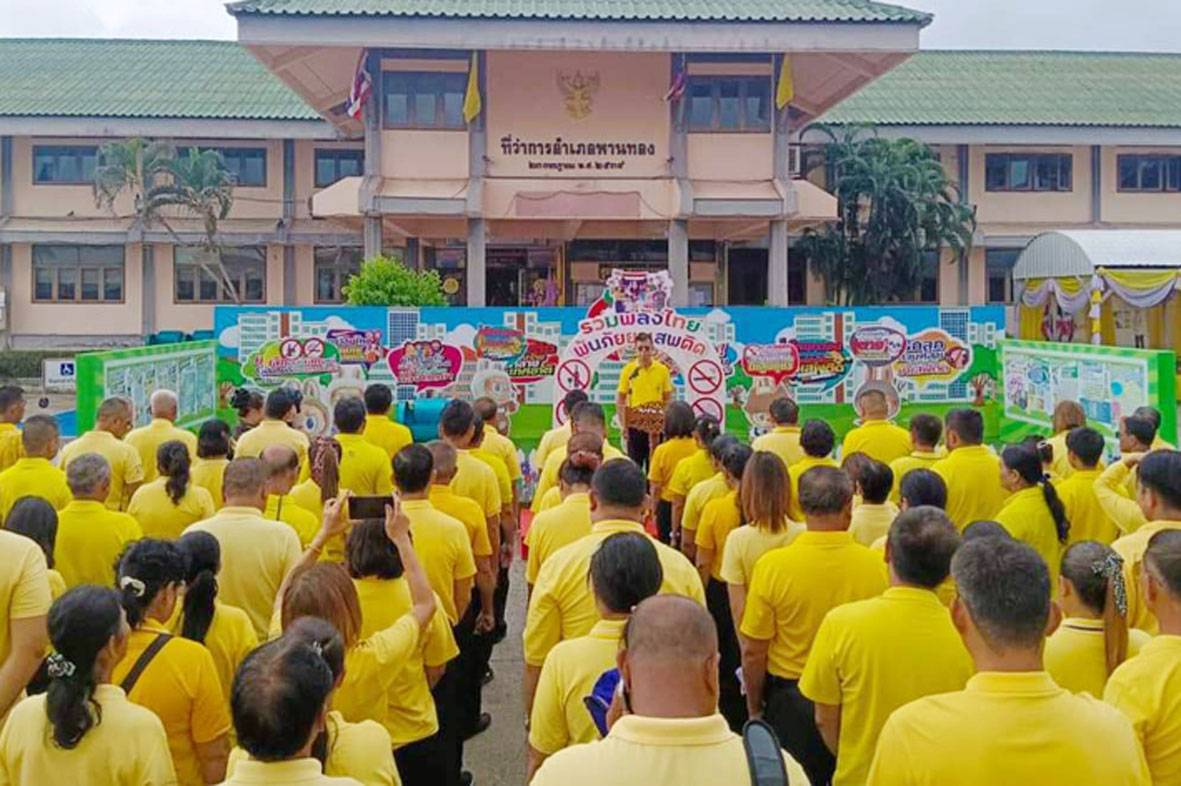พ.ต.อ.ต่อศักดิ์ สารีรัตน์ ผกก.สภ.พานทอง พร้อมด้วย พ.ต.ต.สงวนศักดิ์ น้อยตำแย สวป.(ชส.)สภ.พานทอง พร้อมกำลังสายตรวจและจราจร ร่วมกิจกรรมเนื่องในวันต่อต้านยาเสพติด บริเวณ หน้าที่ว่าการอำเภอพานทอง ซึ่งมี นายปรัตรวีร์ วิจบ นายอำเภอพานทอง เป็นประธานพิธี ร่วมด้วย นางสาวกันยากร กุลพรรัตน์ ปลัดอำเภอหัวหน้ากลุ่มงานบริหารงานปกครอง กำนันณรงค์ศักดิ์ สุขปิติ ประธานชมรมกำนันผู้ใหญ่บ้านอำเภอพานทอง นายธนเดช สว่างโลกศิวากร กำนันตำบลพานทอง และผู้ใหญ่บ้าน ผู้นำชุมชน ร่วมพิธี