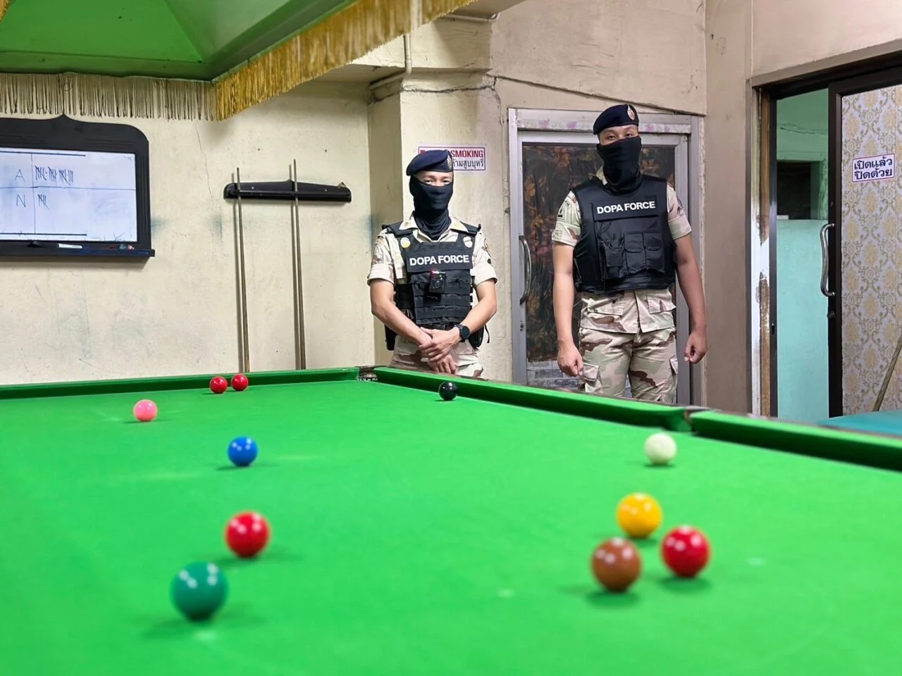 จากนั้นสายลับพนักงานฝ่ายปกครอง ลงพื้นที่ตรวจสอบข้อเท็จจริงอยู่หลายครั้ง เนื่องจากคนแปลกหน้าไม่สามารถเข้าไปเล่นภายในบ่อนได้ ต้องมีคนรู้จักแนะนำ ชักชวน หรือพาเข้า จึงจะเข้าไปเล่นได้ ด้านหน้าห้องที่เป็นบ่อนการพนัน เปิดเป็นโต๊ะสนุกเกอร์ เกือบ 10 โต๊ะ เพื่อบังหน้า ตบตาเจ้าหน้าที่