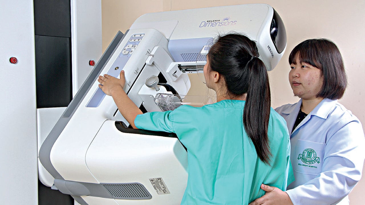 หรือถ้าใครที่คลำเต้านมได้ลำบากก็สามารถมาตรวจคัดกรองด้วยเครื่องมือทางการแพทย์ ซึ่งทางโรงพยาบาลหัวเฉียว แนะนำว่าควรรีบเข้ารับการตรวจคัดกรองอย่างต่อเนื่อง เราพร้อมดูแลสุขภาพคุณผู้หญิง ด้วยแพ็กเกจชุดตรวจคัดกรองมะเร็งเต้านมด้วยดิจิทัลแมมโมแกรม 3 มิติ พร้อมอัลตราซาวด์เต้านม ซึ่งจะช่วยให้ได้ภาพเนื้อเต้านมที่เห็นโครงสร้างผิดปกติของเนื้อเต้านมได้ชัดเจน ร่วมกับวิเคราะห์ความผิดปกติของหินปูน ซึ่งพบได้ในมะเร็งเต้านมระยะเริ่มแรก ก่อนที่จะพัฒนาเป็นก้อน