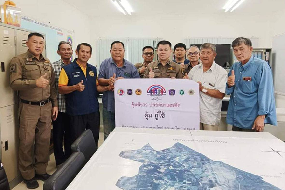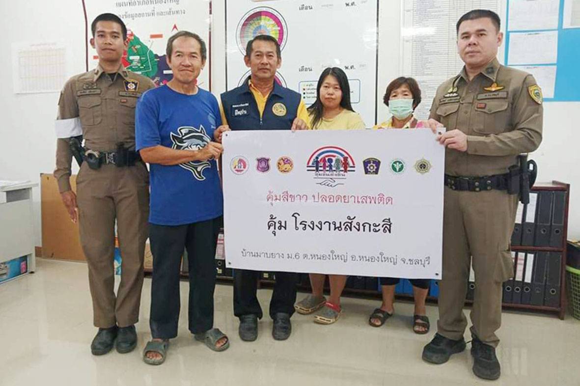 พ.ต.ท.ปิยะวัฒน์ วงศ์ทรายทอง รองผกก.ป.สภ.หนองใหญ่ จ.ชลบุรี พร้อมด้วยเจ้าหน้าที่ตำรวจผู้ใต้บังคับบัญชา นายสมหมาย นาวินปกาสิตย์ ผู้ใหญ่บ้าน ม.6 ต.หนองใหญ่ อ.หนองใหญ่ และผู้นำชุมชนบ้านมาบยาง ร่วมประชุมและรับมอบป้าย คุ้มสีขาว ชุมชนยั่งยืนปลอดยาเสพติด อาทิ คุ้มกู๋ใช้ คุ้มโรงงานสังกะสี เมื่อวันก่อน