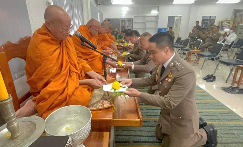 พ.ต.ท.ศรายุทธ ศรีมัญจาบุรี สารวัตรใหญ่สถานีตำรวจภูธรหนองฮี จังหวัดนครพนม นำข้าราชการตำรวจในสังกัดพร้อมครอบครัว กต.ตร.สภ.หนองฮี และผู้นำชุมชุมชน ร่วมทำบุญตักบาตร เข้าแถวเคารพธงชาติ สวดมนต์ไหว้พระ ไหว้ศาลพระภูมิเจ้าที่ กล่าวคำสัตย์ปฎิญาณ อ่านสาร ผบ.ตร. และมอบใบประกาศนียบัตร แก่ข้าราชการตำรวจและผู้สนับสนุนงานโรงพักเนื่องในวันตำรวจแห่งชาติ