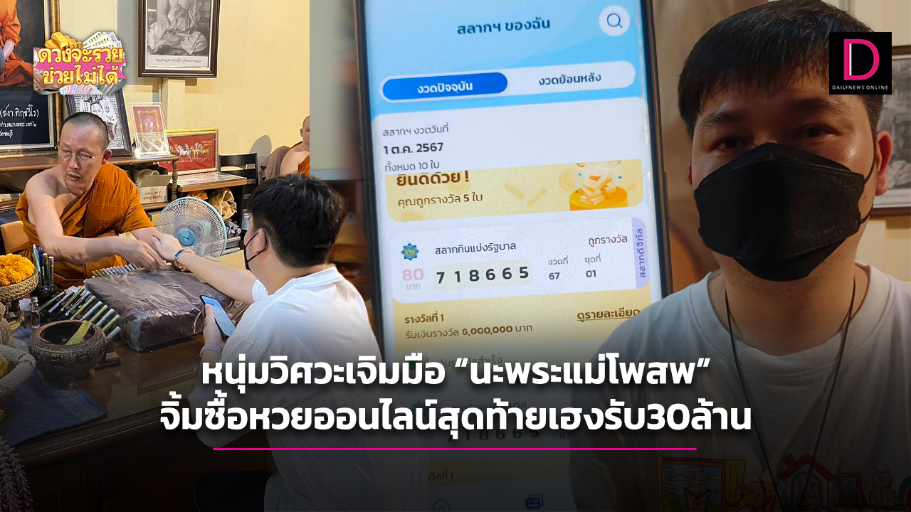 โดยผู้สื่อข่าวได้ พบกับ นายวรวงศ์ อายุ 32 ปี อาชีพวิศวกร ซึ่งถูกสลากกินแบ่งรัฐบาล ในระบบออนไลน์ หมายเลข 718665 จำนวน 5 ใบ งวดวันที่ 1 ต.ค.67 ได้รับเงินจำนวน 30,000,000 บาท