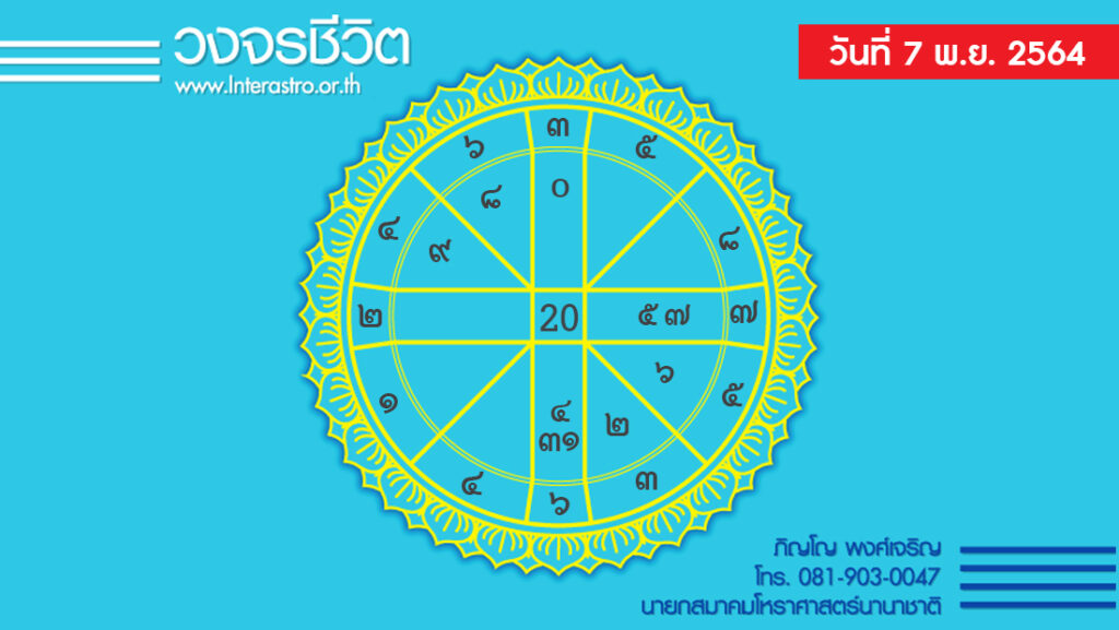 สุริยคติกาล วันที่ 7 พฤศจิกายน พ.ศ. 2564 ค.ศ. 2021 จันทรคติกาล ตรงกับวันอาทิตย์ ขึ้น 3 ค่ำ เดือน 12 ปีฉลู ตรีศก จุลศักราช 1383 อาทิตย์อุทัย เวลา 06.14 น. เที่ยงจริง เวลา 12.02 น. อาทิตย์ตก เวลา 17.49 น. จันทร์ตก เวลา 20.39 น.