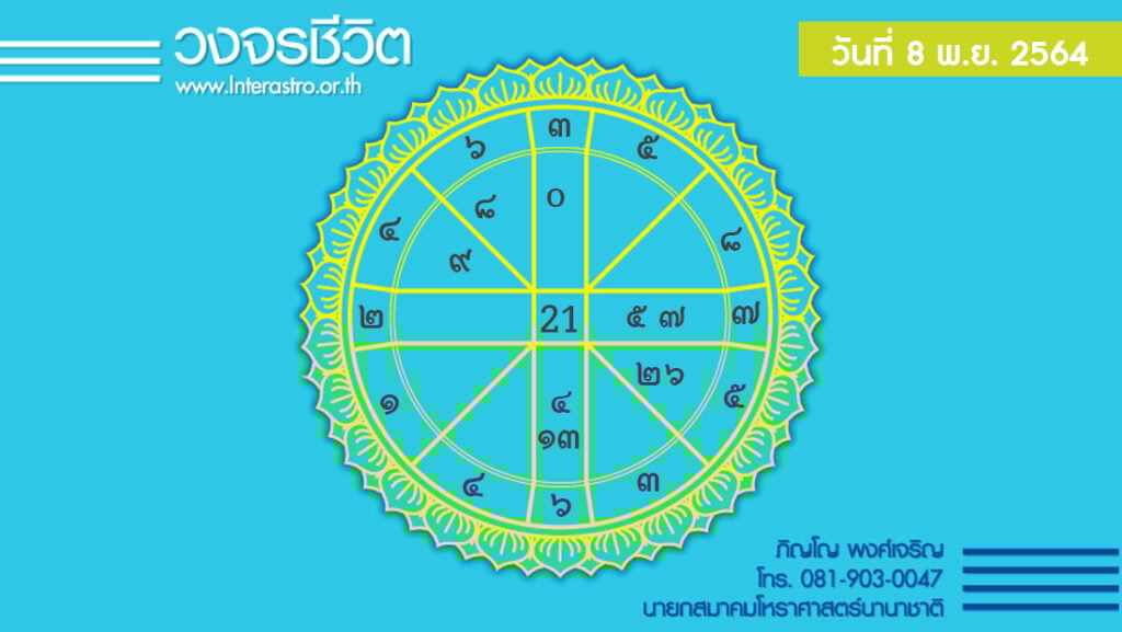 สุริยคติกาล วันที่ 8 พฤศจิกายน พ.ศ. 2564 ค.ศ. 2021จันทรคติกาล ตรงกับวันจันทร์ ขึ้น 4 ค่ำ เดือน 12 ปีฉลู ตรีศก จุลศักราช 1383 อาทิตย์อุทัย เวลา 06.14 น. เที่ยงจริง เวลา 12.02 น. อาทิตย์ตก เวลา 17.49 น.จันทร์ตก เวลา 21.32 น.