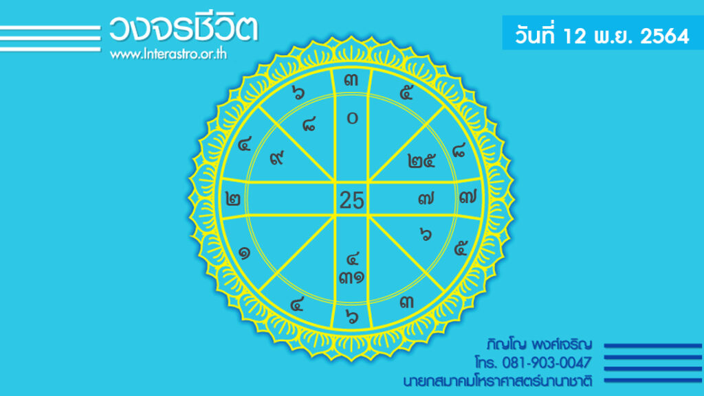 สุริยคติกาล วันที่ 12 พฤศจิกายน พ.ศ. 2564 ค.ศ. 2021 จันทรคติกาล ตรงกับวันศุกร์ ขึ้น 8 ค่ำ เดือน 12 ปีฉลู ตรีศก จุลศักราช 1383 อาทิตย์อุทัย เวลา 06.16 น. เที่ยงจริง เวลา 12.02 น. อาทิตย์ตก เวลา 17.49 น. จันทร์ตก เวลา 01.00 น.