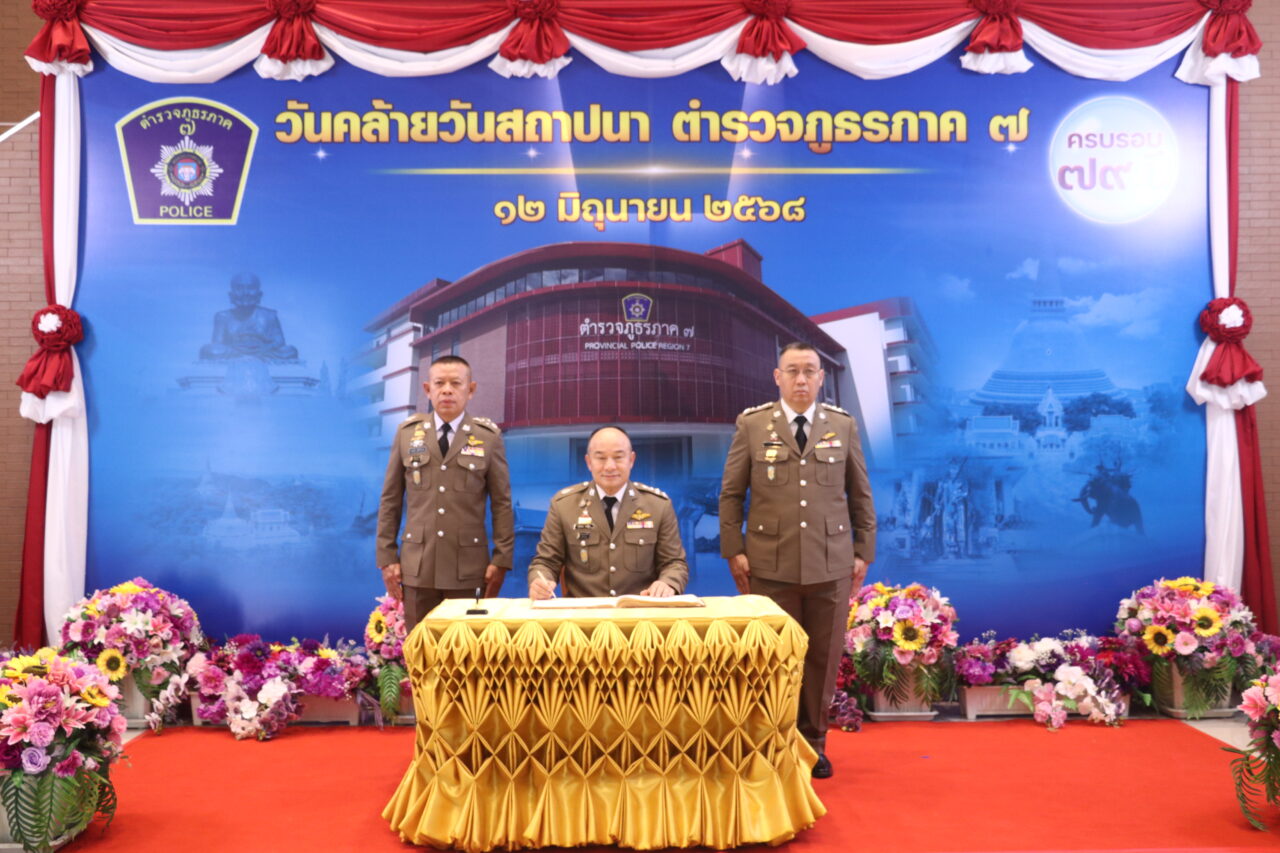 พล.ต.อ.ประจวบ วงศ์สุข รองผู้บัญชาการตำรวจแห่งชาติ มอบแจกันดอกไม้แสดงความยินดีกับ พล.ต.ท.นัยวัฒน์ ผะเดิมชิต ผู้บัญชาการตำรวจภูธรภาค 7 ในโอกาสครบรอบ 79 ปี และทำบุญเนื่องในวันคล้ายวันสถาปนาตำรวจภูธรภาค 7 โดยมี พล.ต.อ.ธนายุตม์ วุฒิจรัสธำรงค์ ที่ปรึกษาพิเศษสำนักงานตำรวจแห่งชาติ พร้อมอดีตผู้บัญชาการตำรวจภูธรภาค 7 ร่วมพิธี ณ สำนักงานตำรวจภูธรภาค 7