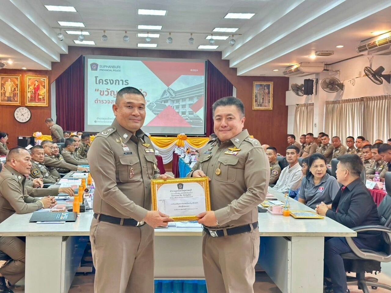 พล.ต.ต.วัชรินทร์ ประสพดี ผบก.ภ.จว.สุพรรณบุรี มอบประกาศเกียรติคุณ ตามโครงการ ขวัญกำลังใจ ตำรวจสุพรรณบุรี ทำดี ให้ พ.ต.อ.พีระ อัศวพิบูลย์ผล ผกก.สืบสวน ภ.จว.สุพรรณบุรี เป็นผู้ปฎิบัติหน้าที่ด้วยความทุ่มเท วิริยะ อุตสาหะ จนสามารถจับกุมผู้ต้องหาคดีฆ่าผู้อื่นโดยเจตนา,พยายามฆ่าผู้อื่น, มีอาวุธปืนและเครื่องกระสุนไว้ในครอบครองโดยไม่ได้รับอนุญาต เหตุเกิดในพื้นที่ อ.อู่ทอง จ.สุพรรณบุรี