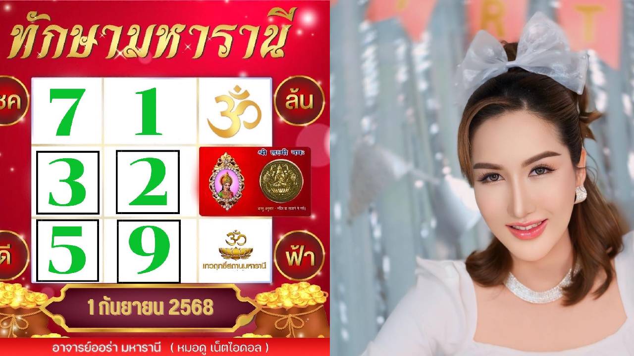 ด้าน อ.ออร่า มหารานี จากตารางทักษามหารานี งวดนี้ได้ตัวเลข 7 – 1 – 3 – 2 – 5 – 9 โดยมีเลขเด่นคือ 3 – 2 – 5 – 9 เลขสองตัว ได้แก่ 12 13 15 17 19 23 25 27 29 35 37 39 57 59 79 ส่วนเลขสามตัวน่าสนใจอย่าง 123 125 127 129 135 137 139 157 159 179 235 237 239 257 259 279 357 359 379 และ 579