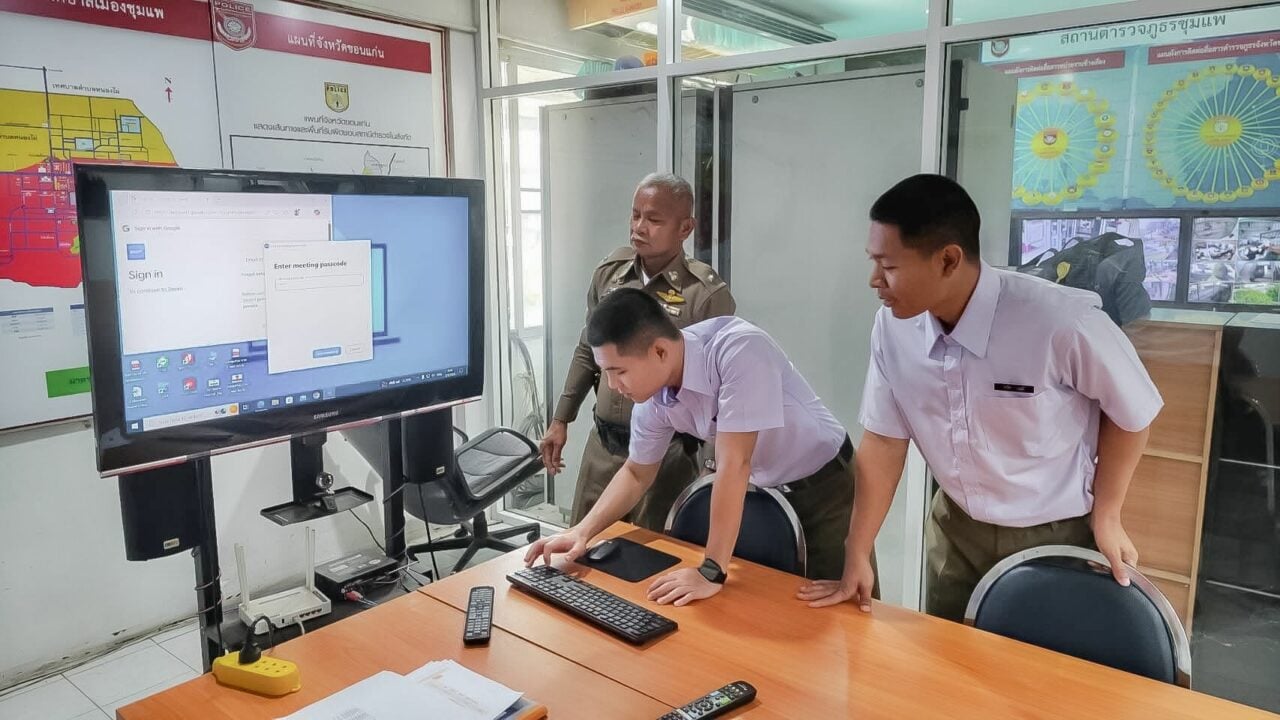 พ.ต.ท.หญิง นงค์คราญ หาญเชิงชัย สว.อก.สภ.ชุมแพ หัวหน้าครูพี่เลี้ยง มอบหมายให้ ร.ต.ต.ชนมภูมิ มีโนนทอง รอง สว.(ป.)สภ.ชุมแพ ผู้ช่วยครูพี่เลี้ยง ให้ความรู้การใช้เทคโนโลยีการประชุมทางไกลผ่านจอภาพ ระบบ zoom meeting กับหน่วยเหนือและสถานีตำรวจในสังกัด ให้แก่นักเรียนนายสิบตำรวจฝึกปฏิบัติราชการ จากศูนย์ฝึกอบรมตำรวจภูธรภาค 4 ณ ห้อง ศปก.สภ.ชุมแพ