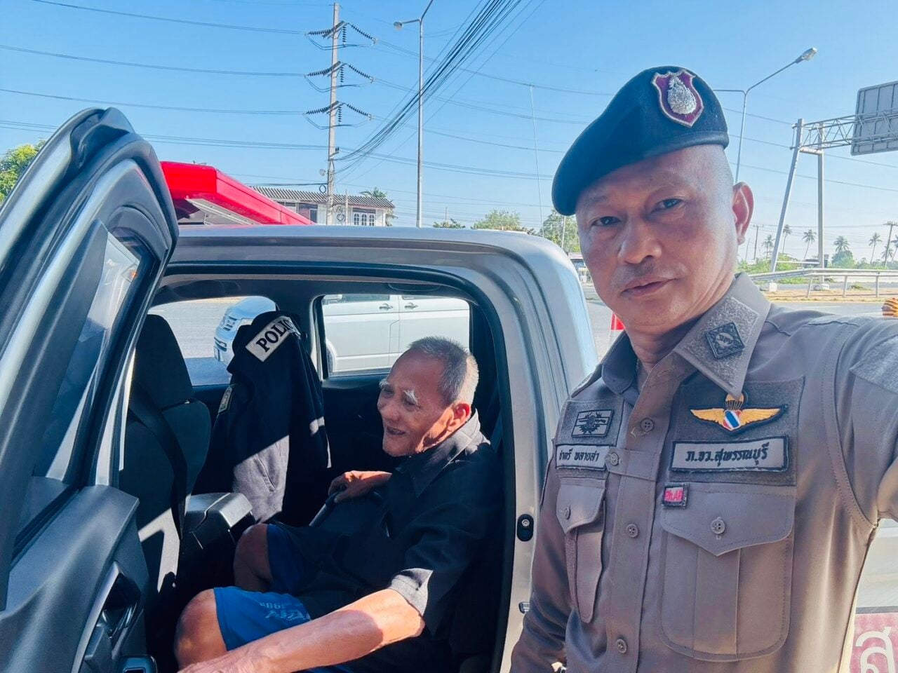 ร.ต.อ.ชาตรี พลายสา หัวหน้าสายตรวจ ต.โพธิ์พระยา อ.เมือง จ.สุพรรณบุรี พบคุณตา กำลังนั่งรอหลานชาย ขี่รถจักรยานยนต์มารับกลับบ้านนาทอง เกิดหน้ามืดกระทันหันจะเป็นลม จึงพาส่งกลับบ้านพัก อย่างปลอดภัย