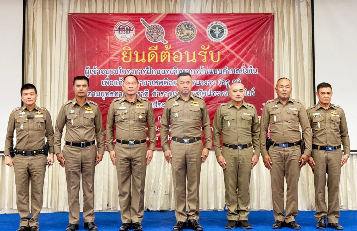 พล.ต.ต.อาทร ชิ้นทอง ผบก.ภ.จว.ประจวบคีรีขันธ์ ประธานเปิดโครงการฝึกอบรมวิทยากรต้นแบบตำบลยั่งยืน เพื่อแก้ปัญหายาเสพติดแบบครบวงจรตามยุทธศาสตร์ชาติ (ครู ข) ตำรวจภูธรจังหวัดประจวบคีรีขันธ์ โดยมี พ.ต.อ.เฉลิมวุฒิ วงษ์เวียงจันทร์ รอง ผบก.ภ.จว.ประจวบคีรีขันธ์ ผกก.ในสังกัด ภ.จว.ประจวบคีรีขันธ์ ร่วมพิธี ที่ห้องประชุมสิงขร โรงแรมประจวบแกรนด์