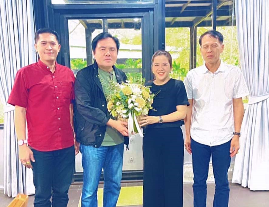 ขอบคุณ…. “นายกแอน” ประทุมมา กังสภัทรกุล นายก อบต.วังด้ง จ.กาญจนบุรี มอบดอกไม้แสดงความขอบคุณ “หมอหนุ่ย” สุรพงษ์ ปิยะโชติ อดีต รมช.คมนาคม ที่ให้คำแนะนำทางการเมือง โดยมี นิติกร แสงทอง รองประธาน สภา อบจ.กาญจนบุรี และ นิจสัย แสงทอง ประธานชมรมกำนันผู้ใหญ่บ้าน อ.เมืองกาญจนบุรี ให้การต้อนรับ ที่ฟาร์มโคนม บ้านพุประดู่ อ.เมือง จ.กาญจนบุรี (ปัญญา มังกโรทัย จ.กาญจนบุรี)