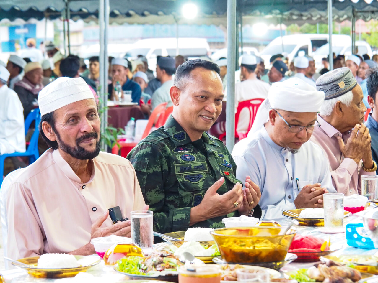 ร่วมละศีลอด. พล.ต.ชาคริต อุจะรัตน รองแม่ทัพภาคที่ 4 ร่วมกิจกรรมละศีลอด กับผู้นำศาสนา บาบอ โต๊ะครู หัวหน้าส่วนราชการ ผู้นำท้องถิ่น ท้องที่ ณ ร.ร.สายบุรีอิสลาม อ.สายบุรี อ.ปัตตานี โดยมี พ.อ.ณัฐวุฒิ ศรีสังข์ ผบ.ฉก.ที่ 44 ให้การต้อนรับ