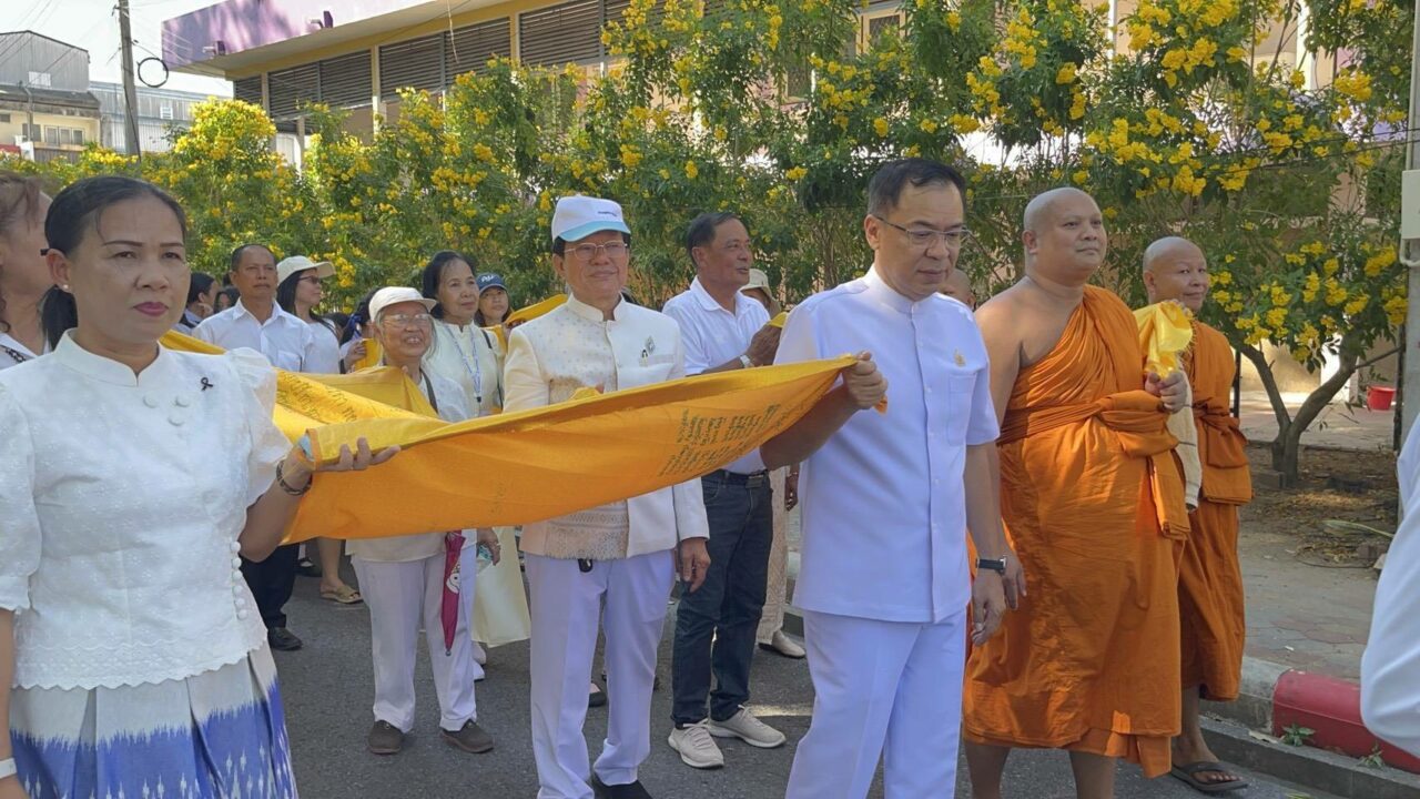 แห่ผ้าขึ้นธาตุ จิรวิทย์ แซ่เจ็ง ผู้ทรงคุณวุฒิ วิทยาลัยชุมชนยะลา และไวยาวัจกร วัดพุทธภูมิ พระอารามหลวง ร่วมพิธีแห่ผ้าขึ้นธาตุ รอบเมืองยะลา ณ วัดพุทธภูมิ พระอารามหลวง อ.เมือง จ.ยะลา