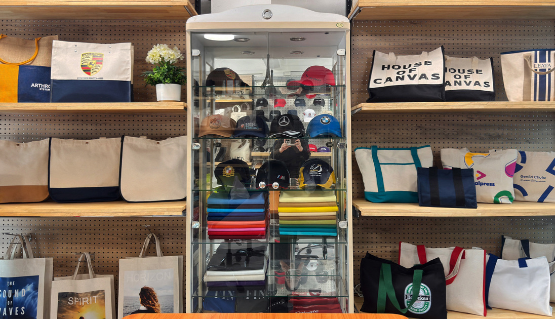 ภายใน Showroom ลูกค้าจะได้พบกับกระเป๋าผ้าหลากหลายดีไซน์ ที่ออกแบบพิเศษตามความต้องการของลูกค้า การได้เห็นตัวอย่างกระเป๋าจริงจะช่วยให้ลูกค้าสามารถเปรียบเทียบรูปแบบ ขนาด วัสดุ และเทคนิคการพิมพ์ลายต่าง ๆ ได้ง่ายขึ้น