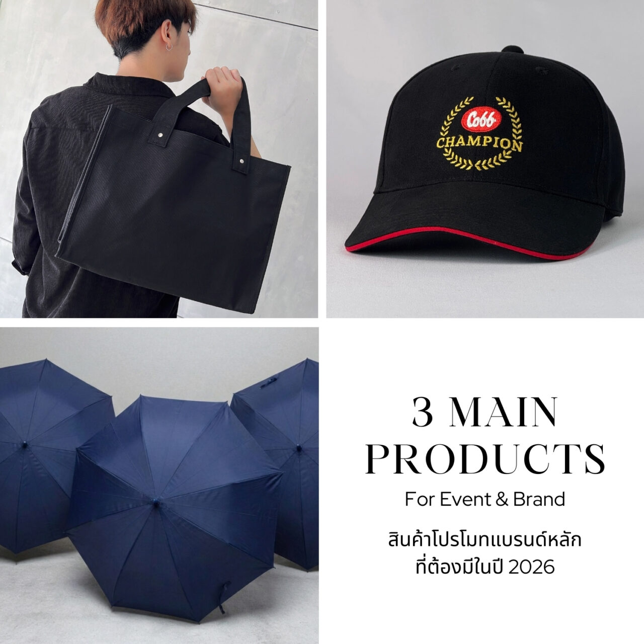 เราไม่ได้มีแค่กระเป๋าผ้า แต่ยังมีสินค้าพรีเมี่ยมทั้งหมวก ร่มให้เลือก